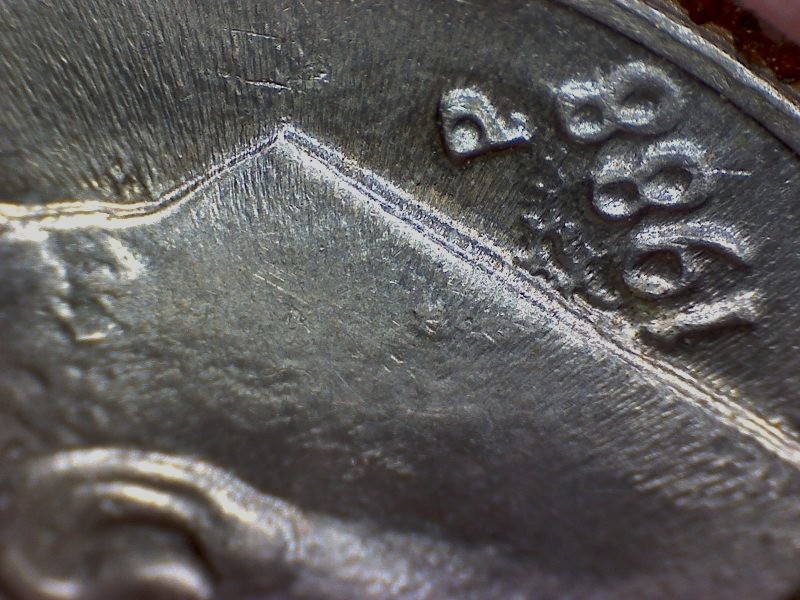 Above the 9 and below the bust, it looks like the top loop of another 8 or 9. But then, as has been known to happen, I might be seeing something that isn't there.