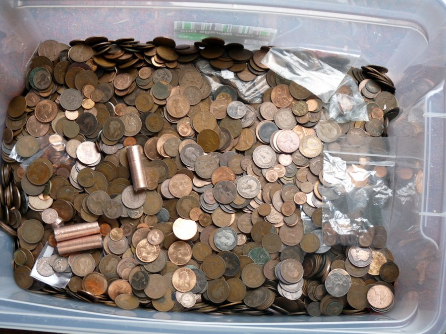 Here is about ten thousand British coppers in my hoard, I think I can see another one in the top layer and its six to eight inches deep. Top right quarter, looks a bit darker than the others.