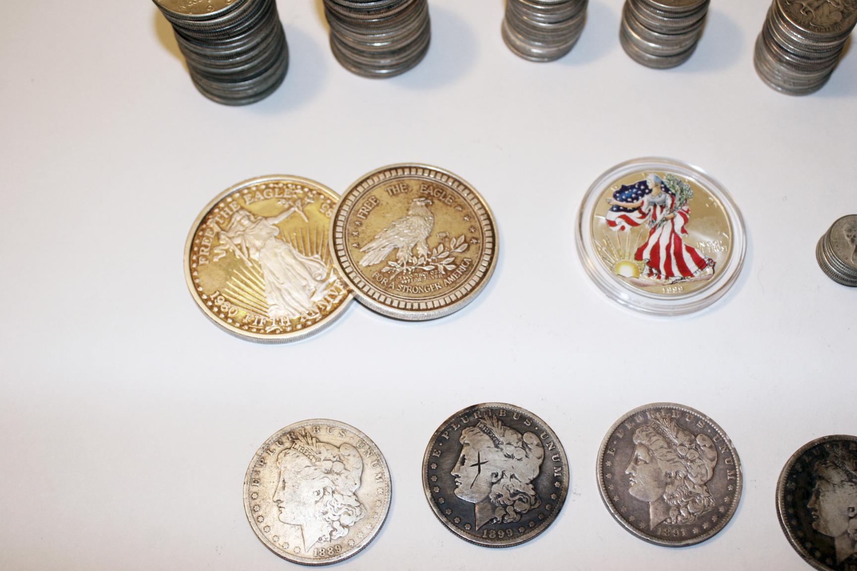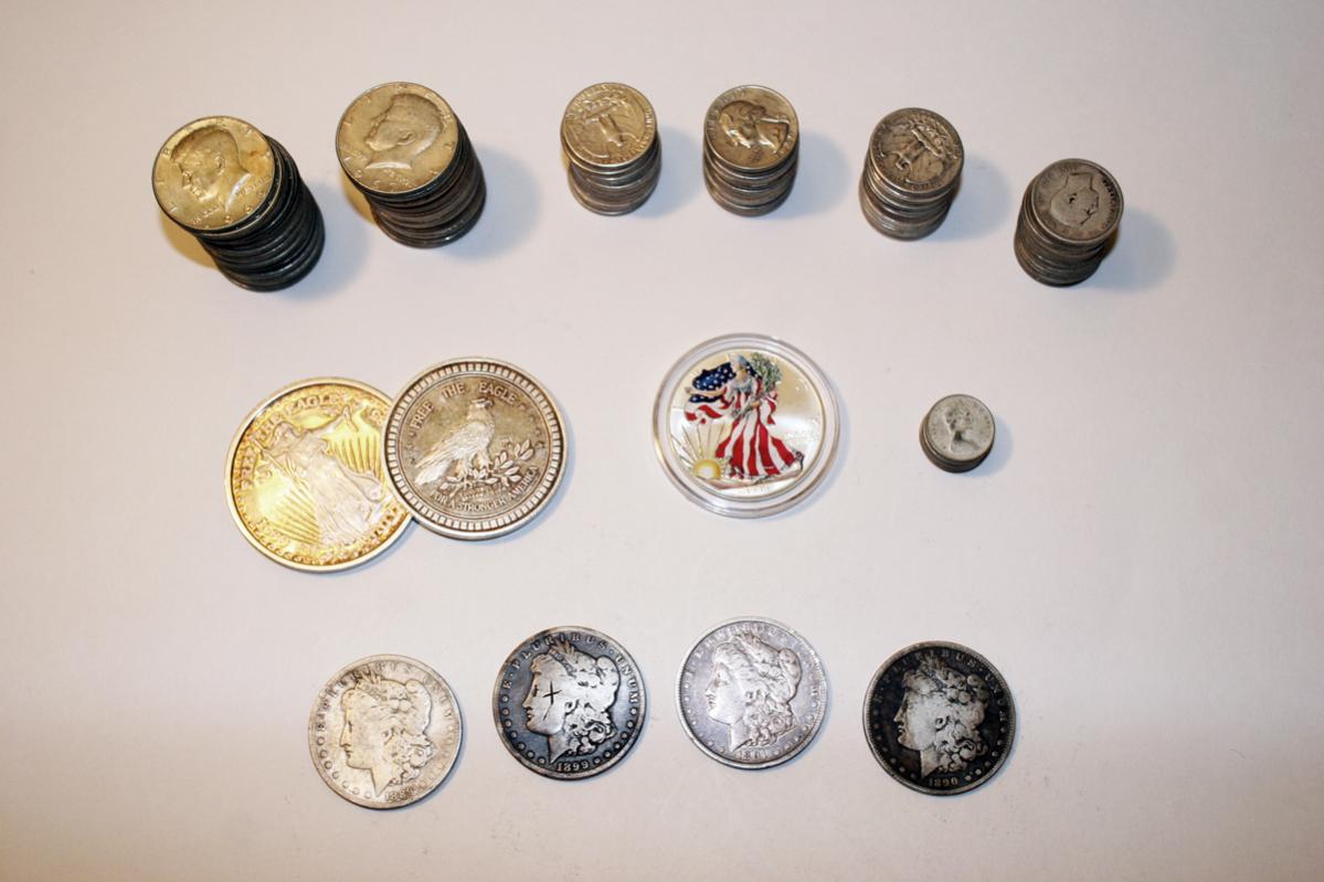As the title says. I'm looking to unload some coinage and rounds--see below. Asking 91% of spot, which will cover shipping, insurance and signature confirmation. 39 Halves, 51 quarters, a fair amount of silver Canadian coinage (<10 dimes and around 15 quarters), 4 Morgans, 2 2oz silver rounds (eagle/liberty themed), one "painted" silver eagle, and I have a 4oz "50 dollar" bar from the Washington Mint with Grant's image (looking for $150 for this one). Please email me (finchfan[at]gmail[dot]com) if interested. I've sold a good amount of silver through this forum and have had no problems. Please email me with any questions or for additional pictures.