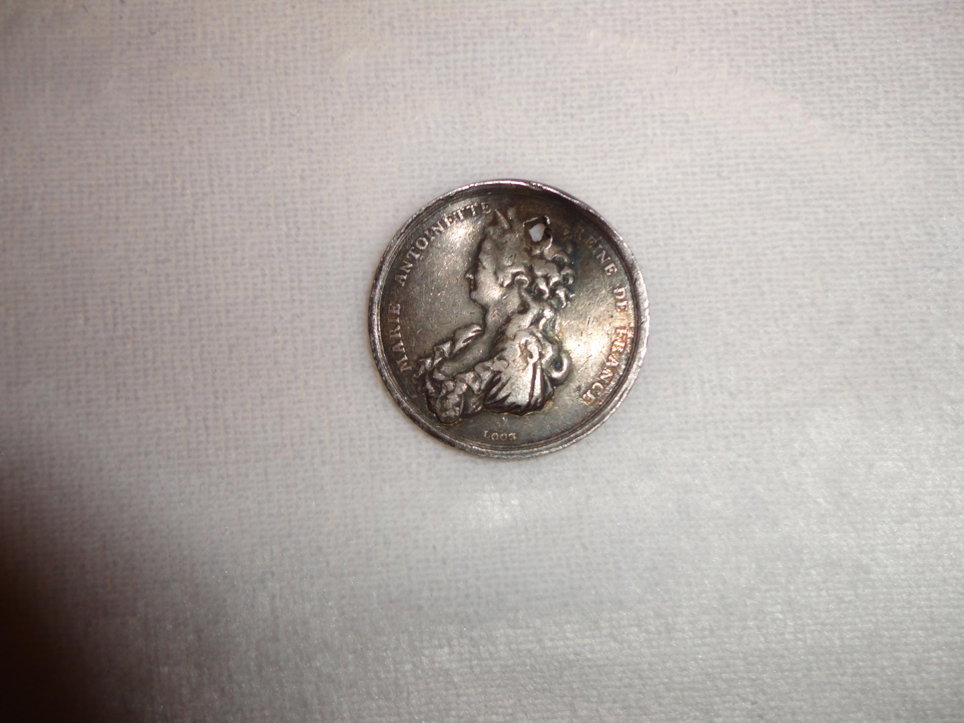 well the first one is a netherlands 1 gulden coin, i did not find the exact same one (all the ones i saw have a shield on the back) so i am assuming it is pretty rare, the second is a marie antoinette coin that looks to be just a commemorative, probably holed to be worn as jewelry is my assumption, i know it probably doesn't help much but it may help a little