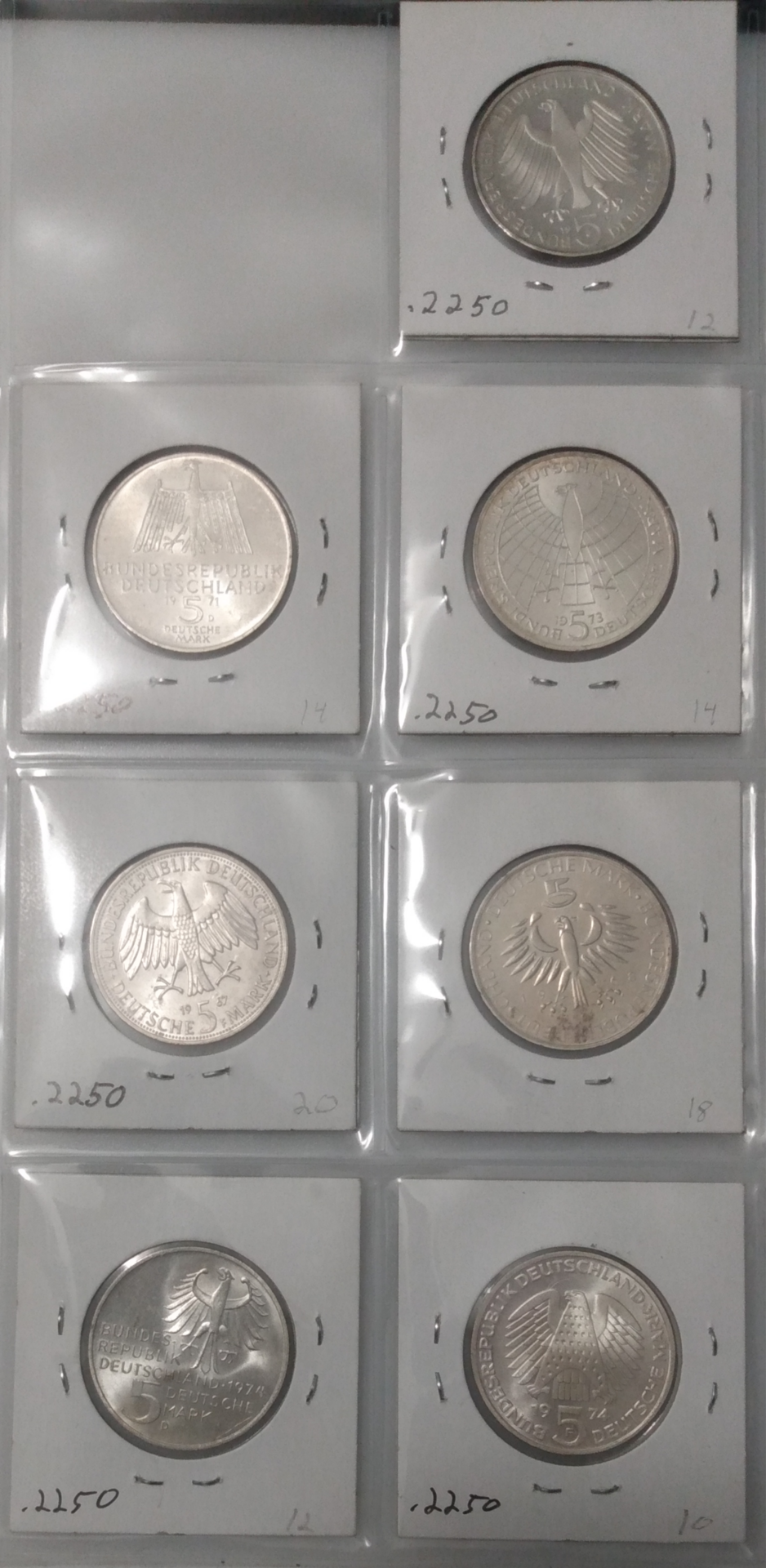 Lot of 15 Silver German Comemmorative Coins $100 shipped. Less than $7 per coin! Total of 3.375 ASW. Some hazing, especially on proofs. Ask for individual photographs if needed. PayPal G&S