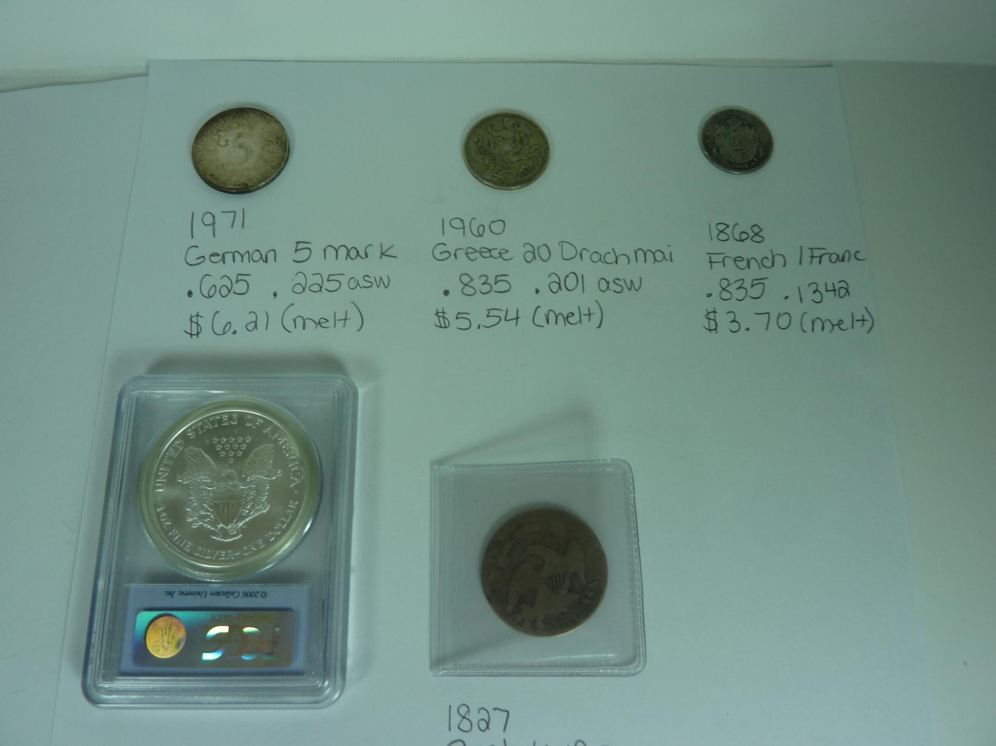 If you need better or individual pictures let me know. Would prefer to sell the foreign coins as a lot but will consider splitting up. Foreign lot for $100 (very close to melt) or $4.60 in junk. If sold for cash buyer pays shipping. Will sell entire lot for $150 or trade for 5 silver eagles, $8.25 face in junk or numismatic US coins. Thanks