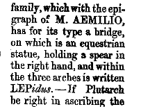 Why would a family(Gens Aemelia) connected to the building of a famous bridge choose to instead depict the image of something not publicly attributed to them(an aqueduct) on their coinage?