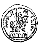 R: M•AE-MILI•, equestrian statue atop triple arch; L-E-P within arches.