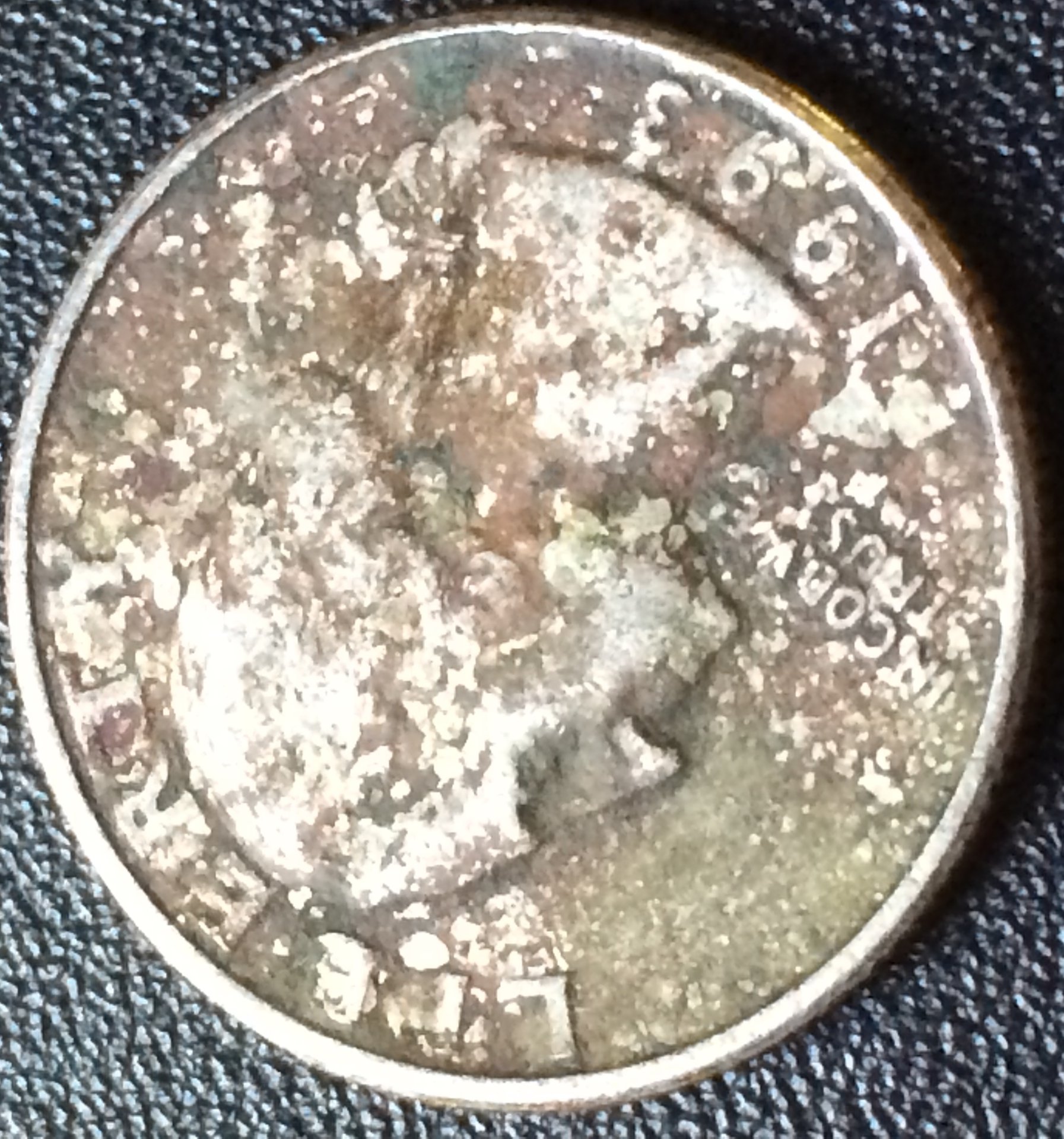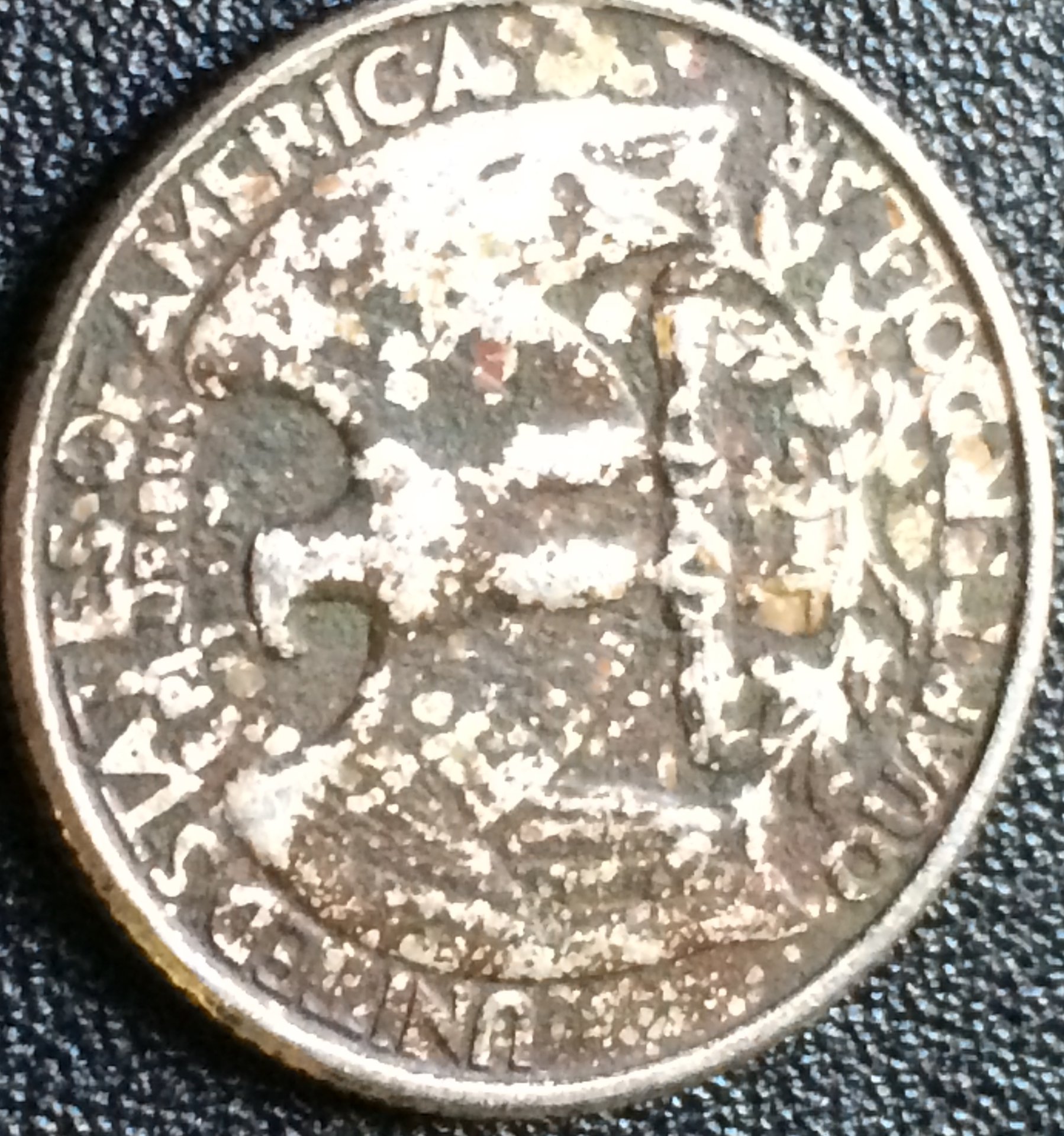 Metal detecting quarter. I find these all the time at the beach. It is the effect of salt water on the coin