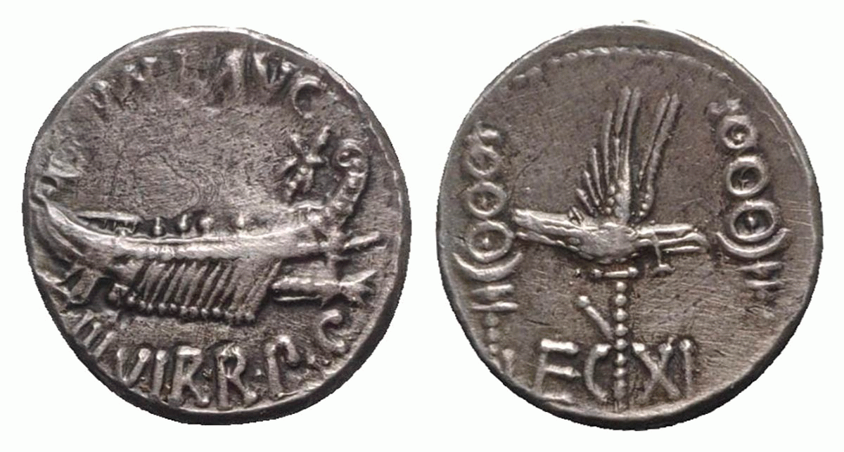 The OP may look undersized but with quite a good weight for the issue. Mine below is undersized and one gram below... Marcus Antonius, Denarius - Mint travelling with Marcus Antonius, c.32-31 BCE ANT AVG III VIR RPC, Galley right LEG III, Legionary eagle between two standards 2,83 gr Ref : HCRI #350, Cohen #28 Q