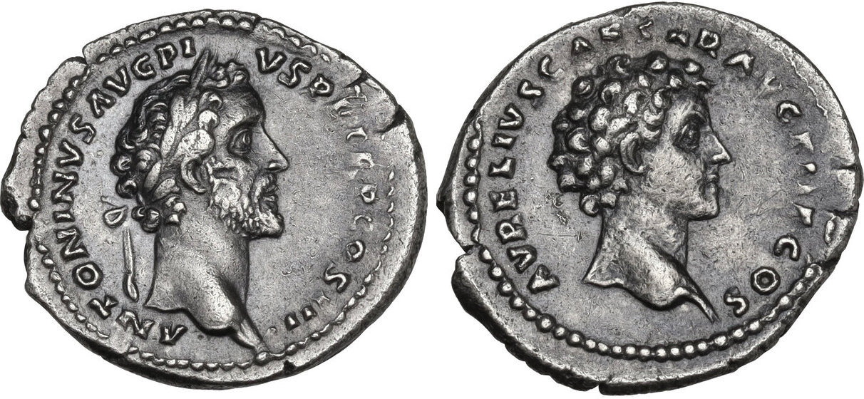 Nice pickup Donna Here is my Marcus Aurelius (yeah I know I’ve shared it before but I love Marcus Aurelius and I wanted to participate but I only have one of him). Marcus Aurelius, as Augustus (AD 161-180). AR denarius (19mm, 3.37 gm, 11h). NGC AU 5/5 - 4/5.Rome, AD 168-169. M ANTONINVS AVG ARM-PARTH MAX, laureate head of Marcus Aurelius right / FORT RED TR P XXIII•IMP V, Fortuna seated left, rudder in right hand, cornucopia in left; COS III in exergue. RIC III 205. & I don’t have Antoninus Pius on the same coin so here is a coin of mine of him on one of his own coins xD: Antoninus Pius (AD 138-161). AR denarius (18mm, 3.55 gm, 11h).NGC Choice XF 5/5 - 4/5. Rome, AD 158-159. ANTONINVS AVG PIVS P P TR P XXII, laureate head of Antoninus Pius right / VOTA SVSCE-PTA DEC III, Antoninus Pius, veiled, standing facing, head left, with patera in outstretched right hand over lit tripod; COS IIII in exergue. RIC III 294b.