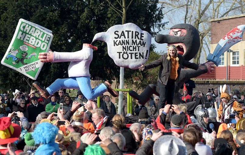 Whoa ... And now you have and need several months to recover, eh? Here is a photo from our local Rosenmontag (Lundi Gras, sort of). The parade is mostly bands, artists, club trucks ... but also a few with political satire. This motto means Satire cannot be killed. Cool! Hope your son felt encouraged rather than embarrassed. Christian