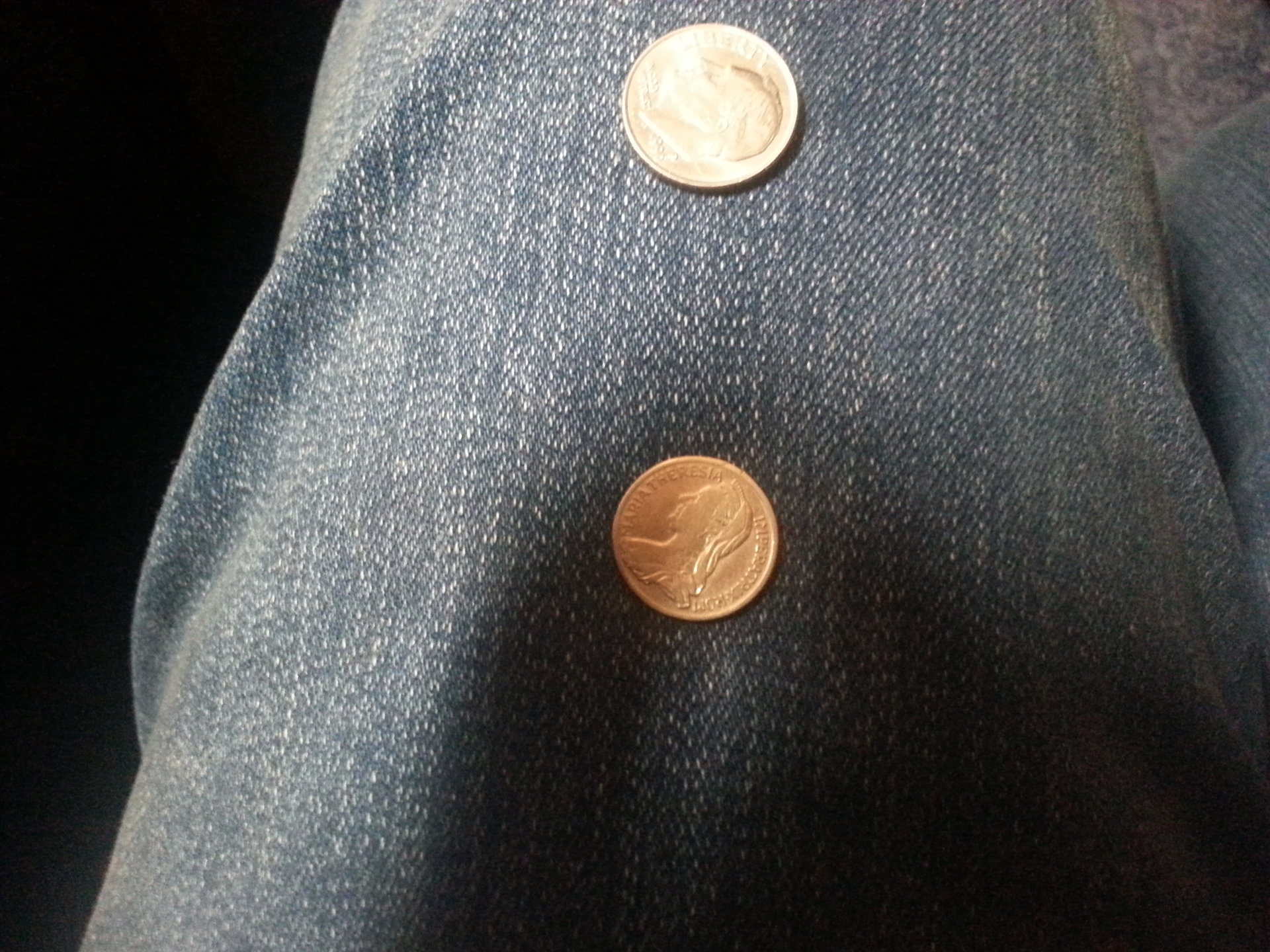 Here is the photo.[/QUOTE] Whew. That was not easy. The reverse is identical to every other Austrian ducat of Maria Theresia of that period and the date is 1760 and weight 1.5 grams. It is just a bit smaller in diameter than the accompanying dime. Again, what is unusual about this is the bust facing left. The only other one I have seen like that is the one pictured in the link Tom B put up and on that site it is under "Medals".