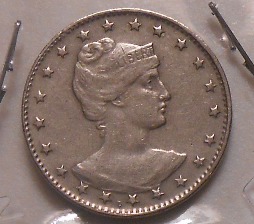 A nice Italian token I just picked up, with probably the best example of Art Nouveau styling I've seen on a coin. I think she fits your "liberty" requirement: