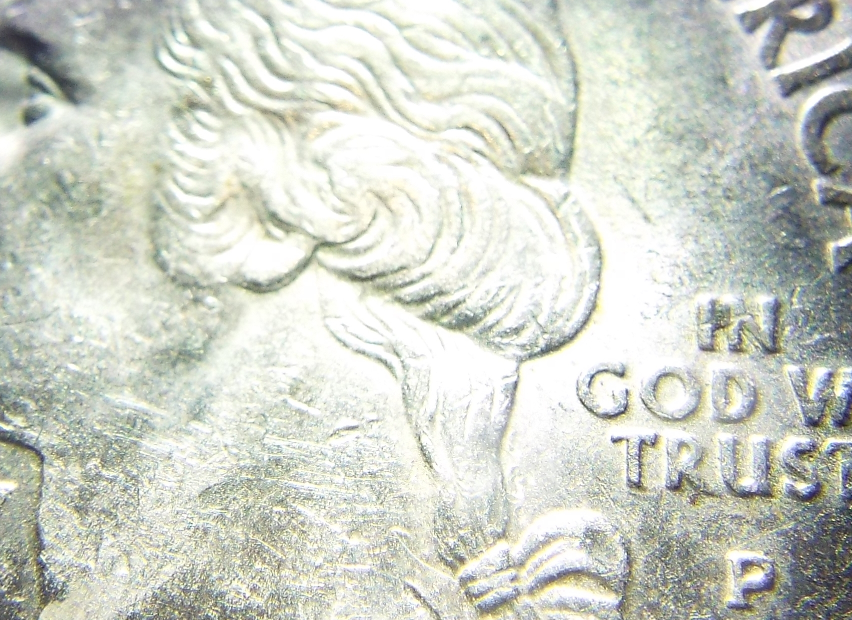 Ok, I have another one for anyone who wants to give their opinion. I wish the picture came out better, but this was the best I can do right now under the circumstances. Is this a doubled ear lobe? It looks more pronounced under the glass, there is also doubling of "In God We Trust" and "Liberty" which also looks more pronounced under the glass. Thanks for your input.