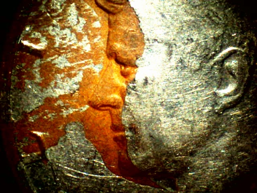 On this coin it would be about impossible to say what happend to it because it looks like it has been thru a war. It looks beat up about as bad as I do. LOL but you are correct it does have part of the cladding missing , I have no idea of what caused this. Your other coin is awesome though and is a oddball coin. I have about stopped collecting regular error coins . I have way too many regular type errors and variety coins and now I'm only interested in the oddball and unusal things.