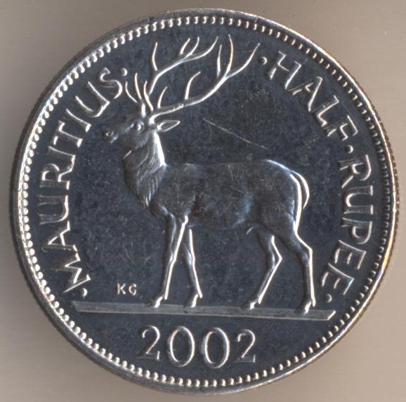 Republic. Half rupee 2002, nickel plated steel, weight - 5,83 g., size - 23,59 mm, thickness - 2 mm, mintage - unknown. Coins of this type were released at 1987, 1990-91, 1997, 1999, 2002-2005, 2009-2010 and 2013.