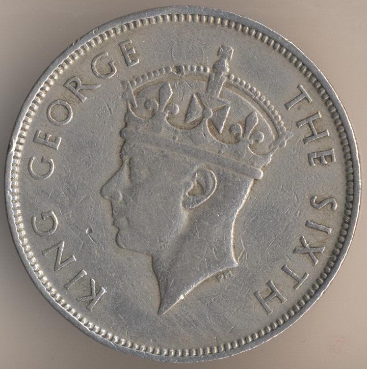 One rupee 1950, copper-nickel, weight - 11,7 g., size - 29,6 mm, thickness - 2,35 mm, mintage - 1500000 pcs. Engravers: Percy Metcalfe (obverse - portrait) and George Edward Kruger Gray (reverse - face value). Coins of this type were released at 1950 and 1951. Ruler: king George VI (1936-1952).