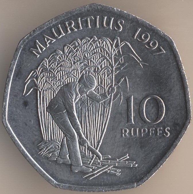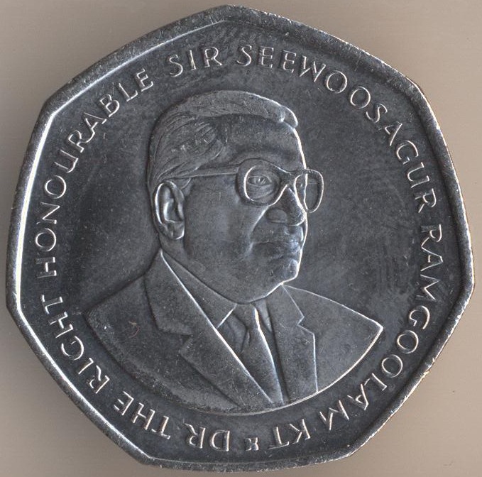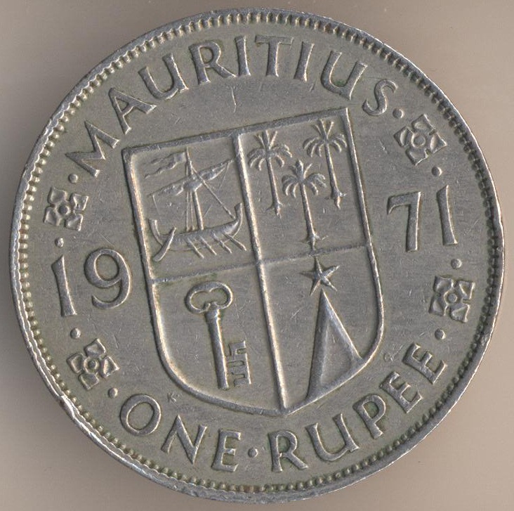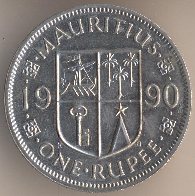 Mauritius as the member of the British Commonwealth. One rupee 1990, nickel plated steel, weight - 7,45 g., size - 26,5 mm, thickness - 1,8 mm, mintage - unknown. Coins of this type were released at 1987, 1990-91, 1993-94, 1996-97, 1999, 2002, 2004-2005 and 2007-2010.