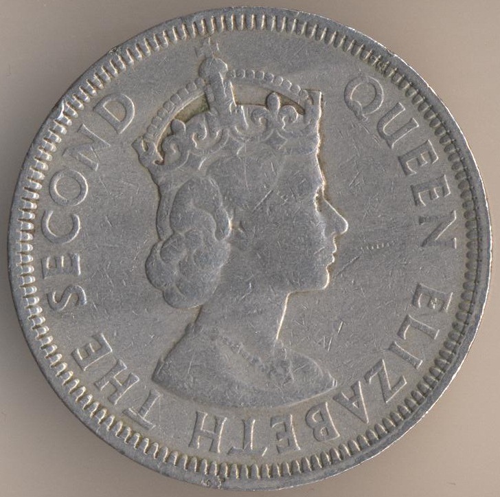 One rupee 1971, copper-nickel, weight - 11,7 g., size - 29,6 mm, thickness - 2,2 mm, mintage - 600000 pcs. Engravers: Cecil Thomas (obverse - portrait) and George Edward Kruger Gray (reverse - face value). Coins of this type were released at 1956, 1964, 1971, 1975 and 1979. Ruler: queen Elisabeth II.
