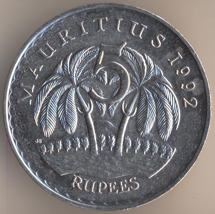 Republic. Five rupees 1992, copper-nickel, weight - 12,62 g., size - 31 mm, thickness - 2,36 mm, mintage - unknown. Coins of this type were released at 1987, 1991-92, 2009-2010 and 2012.