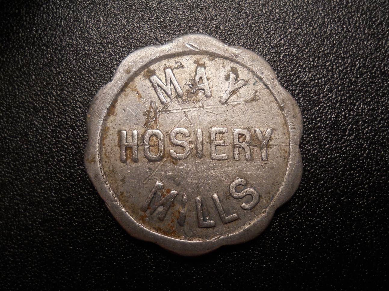 Hey guys, I recently bought a token from May Hosiery Mills off ebay for $2. On one side it says "Good for 5c in Trade" and on the other it says May Hosiery Mills. I know the mill was located in Nashville but that's all I have been able to determine. If anybody knows anything about these, specifically when they were made, I would greatly appreciate it. Its got a rounded rim like some Hong Kong coins and its made from aluminum. Thanks, Tyler p.s we have a like button now??? Facebook is taking over the world!