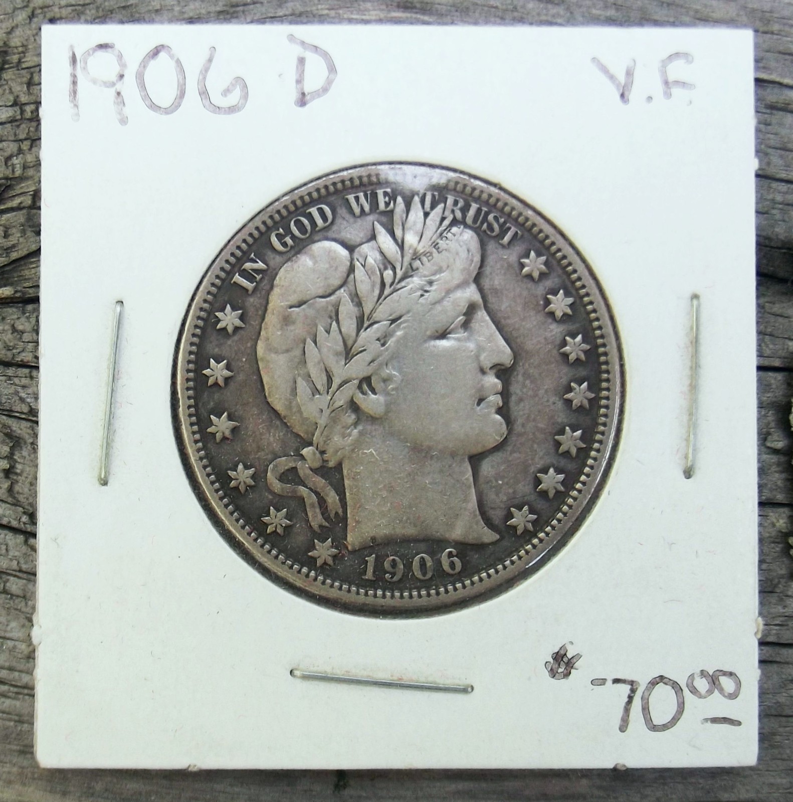 I saw one on eBay for $95:http://www.ebay.com/itm/1906-D-Barber-Half-Dollar-50C-VERY-FINE-VF-/290941277577.