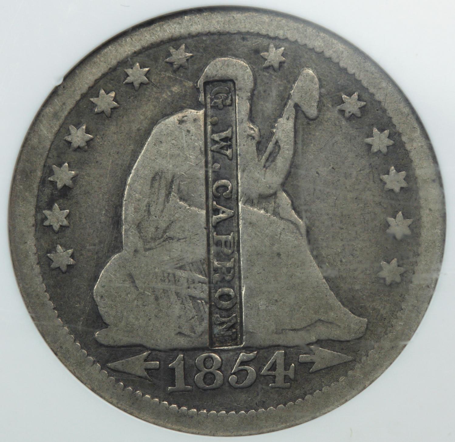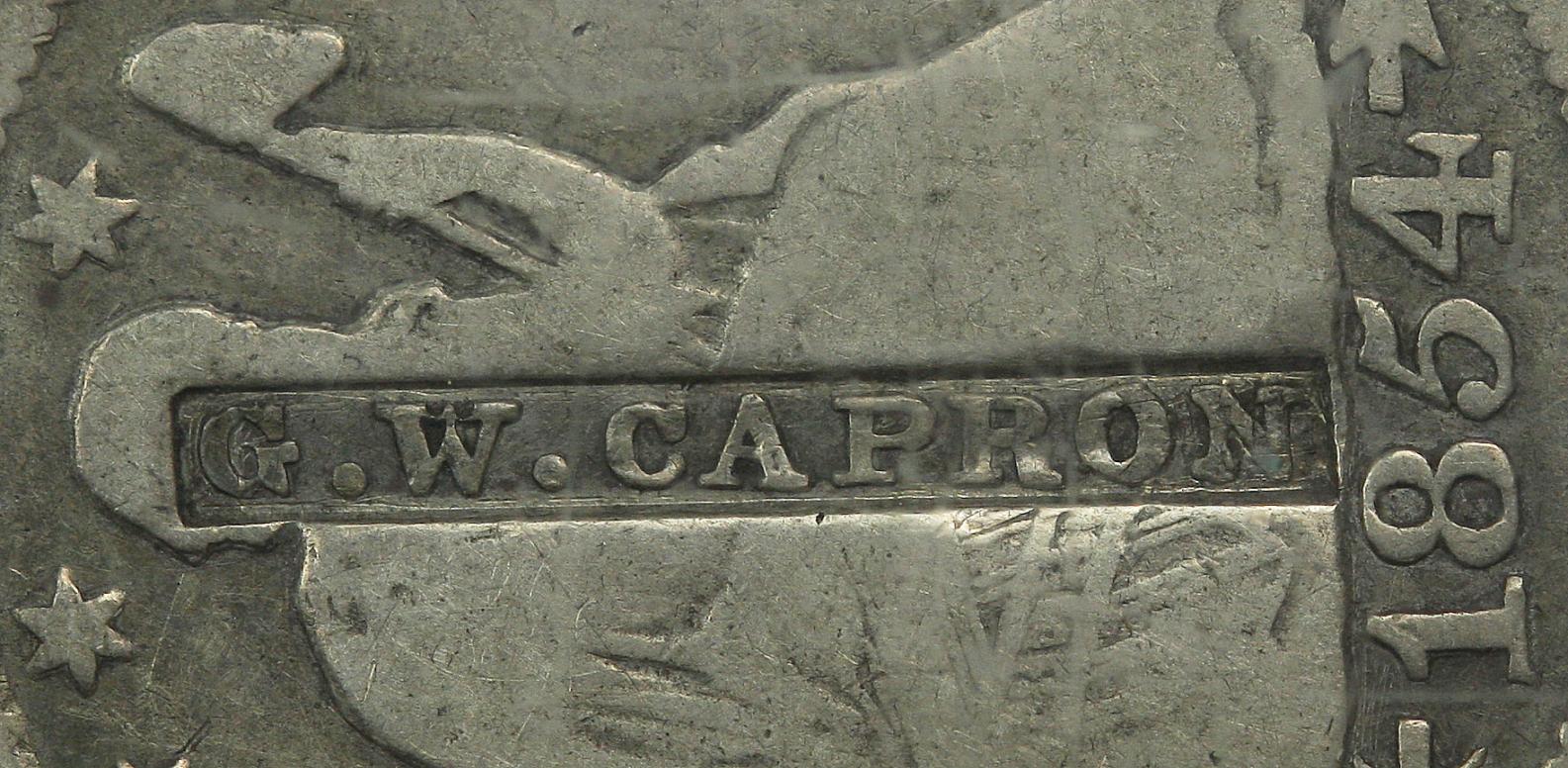 LOL this http://coins.ha.com/c/item.zx?saleNo=1144&lotIdNo=19005 G.W. Capron was born circa 1804 in KY, appeared as the Head of Household on the census of 1860 in Houston, Harris, TX. He was a jeweler in 1860. And you saw this, presumably: http://stacksbowers.com/auctions/AuctionLot.aspx?LotID=258544 "The most recent research on this mark comes from Russ Rulau, who wrote an article for Numismatic News that was published April 23, 2008. It attributes the mark to George Washington Capron, a Kentucky silversmith who traveled to Mississippi where he wed Elizabeth Perry, niece of Commodore Perry. The family moved to Republic of Texas and settled in Houston about 1840. The article shares a very interesting story about Capron and his part in the Miers expedition to Mexico. Since the latest-dated piece known with the Capron mark is 1861, Rulau suggests that there is a good case that all were marked in that year or later, in Texas, and after Texas seceded from the Union. This would place their manufacture squarely under the Confederacy, making them perhaps the only Civil War tokens from Texas. Rulau states no Civil War token has ever been reported from Texas, and he believes this one is a legitimate candidate. A copy of the article is included with the coin.