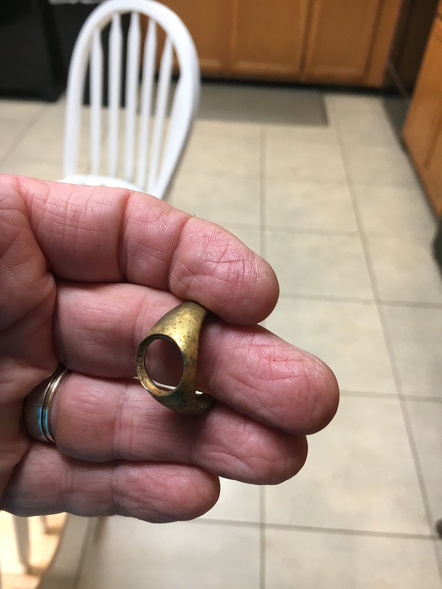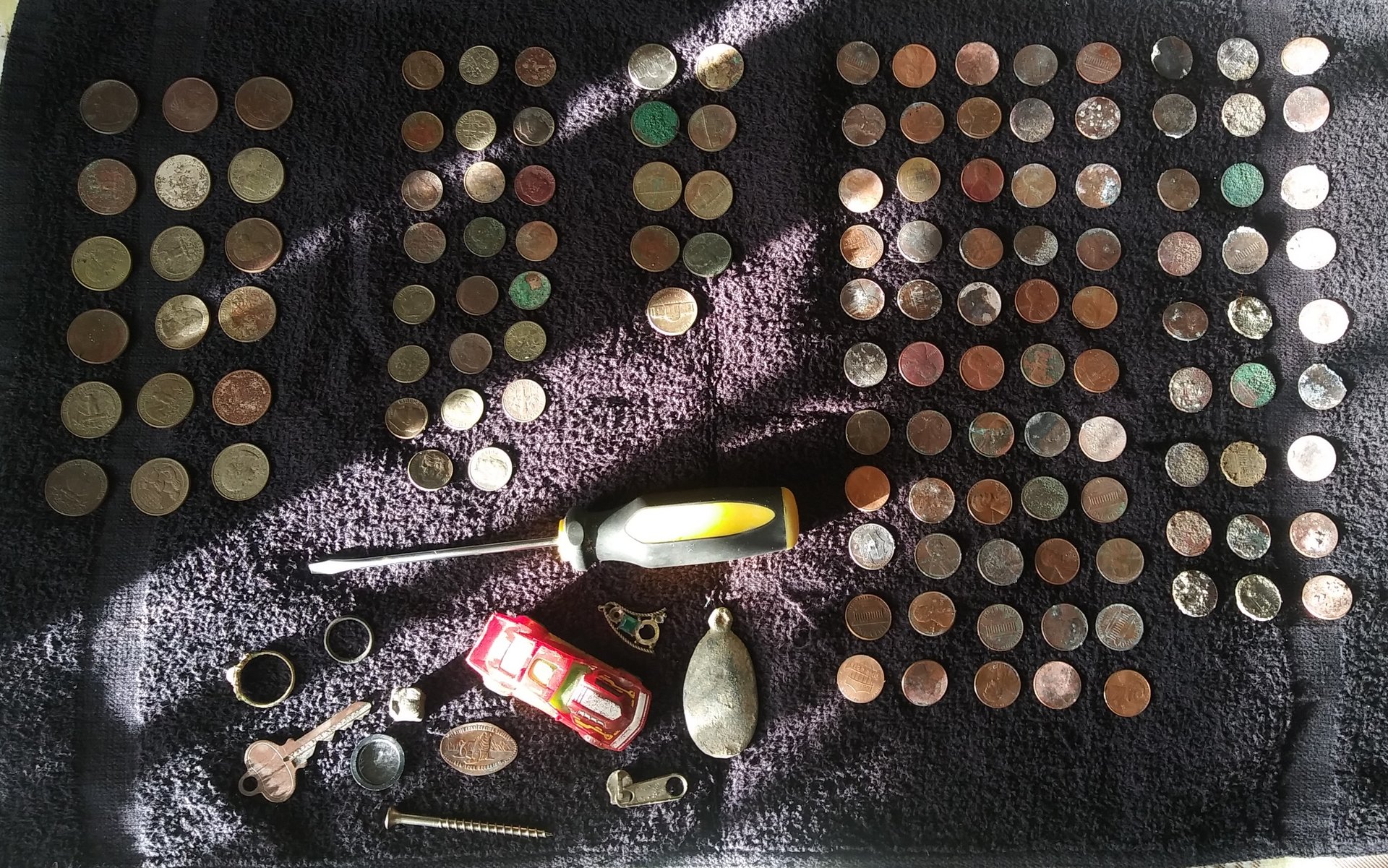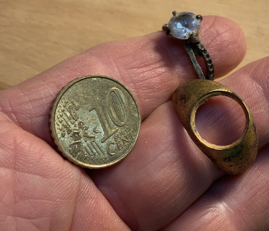 2) pulled out what initially appeared to be a large diamond ring from under a massive oak tree. Once in sunlight I could see it’s a kid’s ring