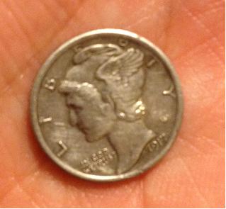 i have had a detector for a few years and have not used it much... I recently bought a new house and so i was on the back porch with my fiancee. I decided to see what i amy find in my backyard. fiancee was not thrilled with the idea and agreed that i could start with one hole. i dug carefully over a hot spot and 8 inchs down i found a 1917 liberty dime I nearly died i was thrilled... more holes tomorrow!!!