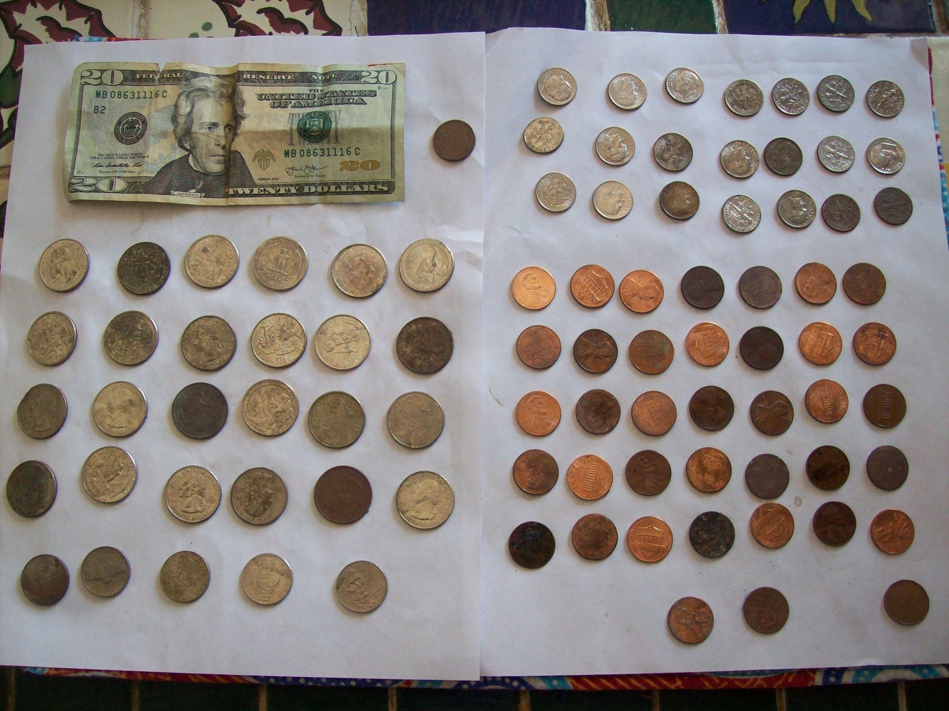 It pays to go early. I was at this site which was a bust, on my way out I picked up the twenty and dug a dime in the same spot. The next spot, I open my car door and there's a quarter on the blacktop.
