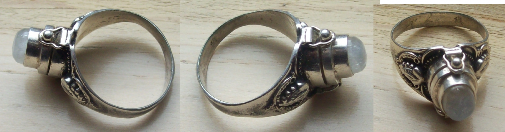 Bill in Burl Yes duh (me duh). So I realized on this ring there is a little clasp and the top opens up to keep something small inside. (drugs?) It was empty.