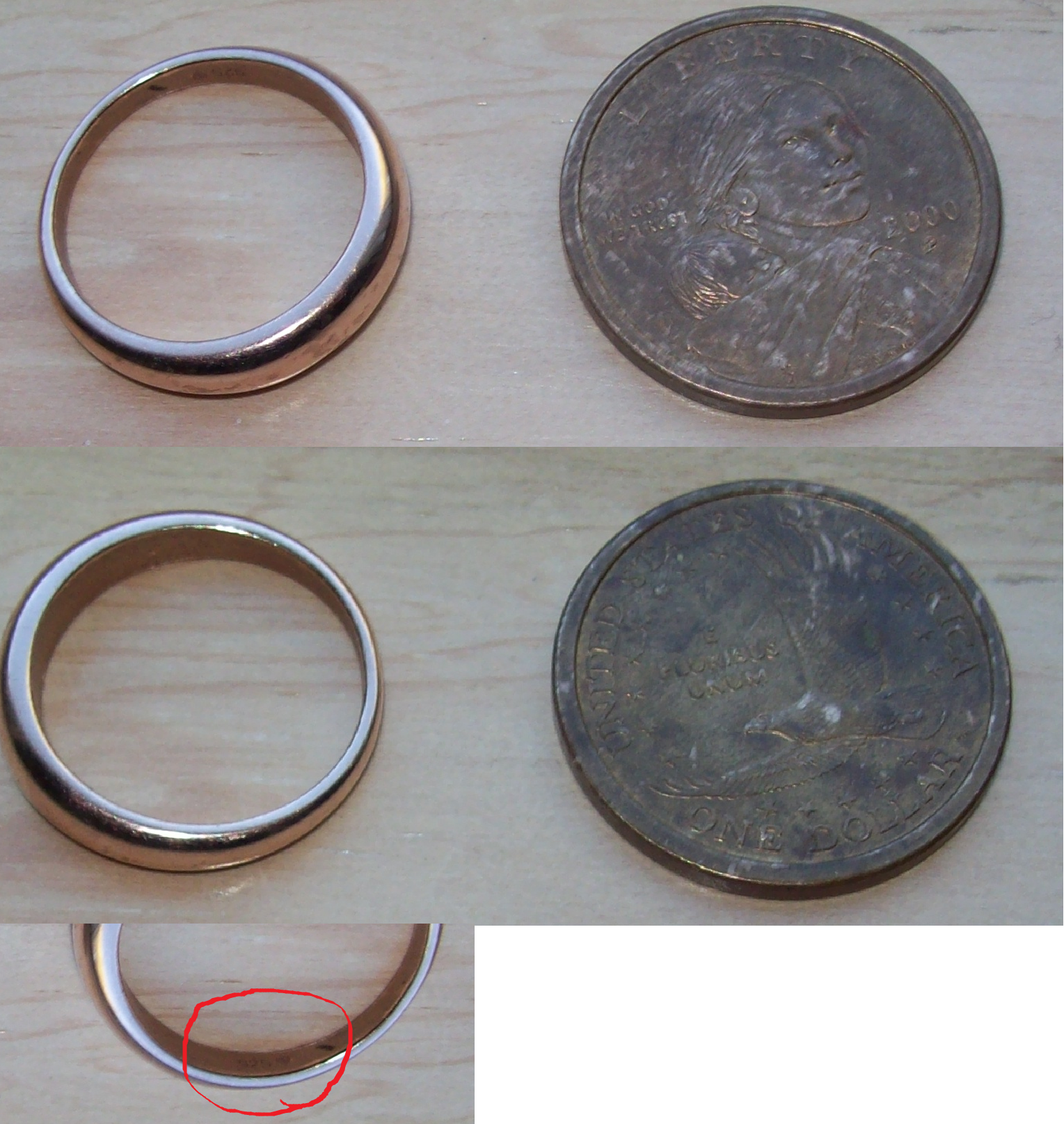 Getting an early start on my Easter hunt. I hit 2 spots. Silver ring at 1 and a dollar coin at 2. It was early in the AM just starting to get light and I get a really good signal on the ring. But when I first looked at it (I didn't think it was gold) even though it had a gold finish/patina. When I get in the car, I looked at it and figured it was copper. But when I got home and looked through the loupe, it is stamped 925 next to a fancy lattice designed heart hallmark, the quality, weight,hallmark and signal all say that it's silver. It must be gold plated over silver as I have pulled a few legit silvers that were plated gold over them. I tried to show the stamp and hallmark at the bottom.