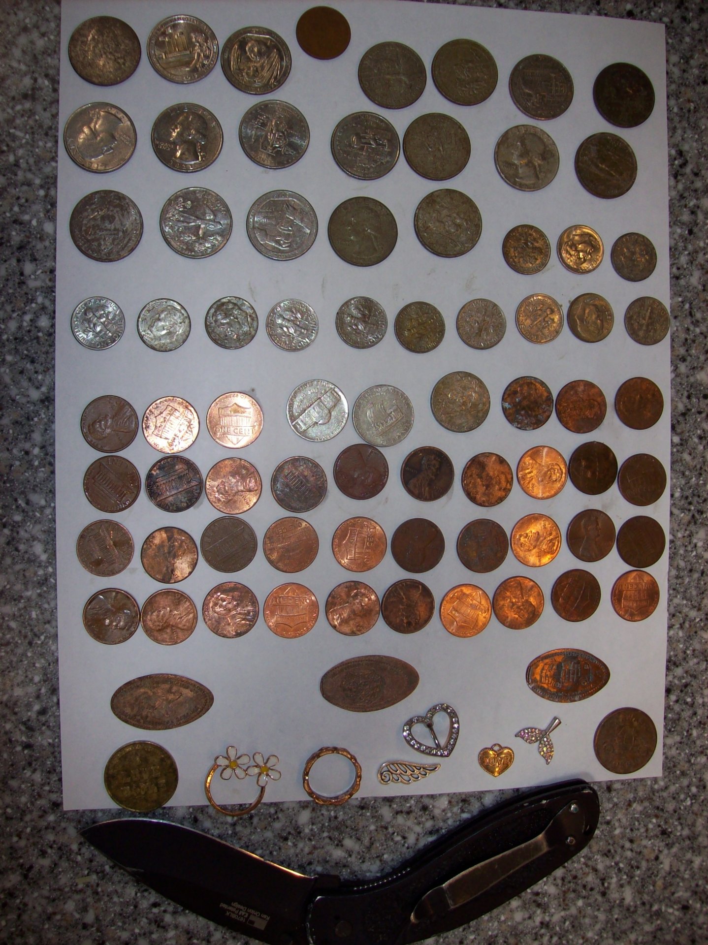 Nice! That's a lot of coins to find! And a whole roll of Lincoln cents! Do you dig everything, or do you try to discriminate pennies?