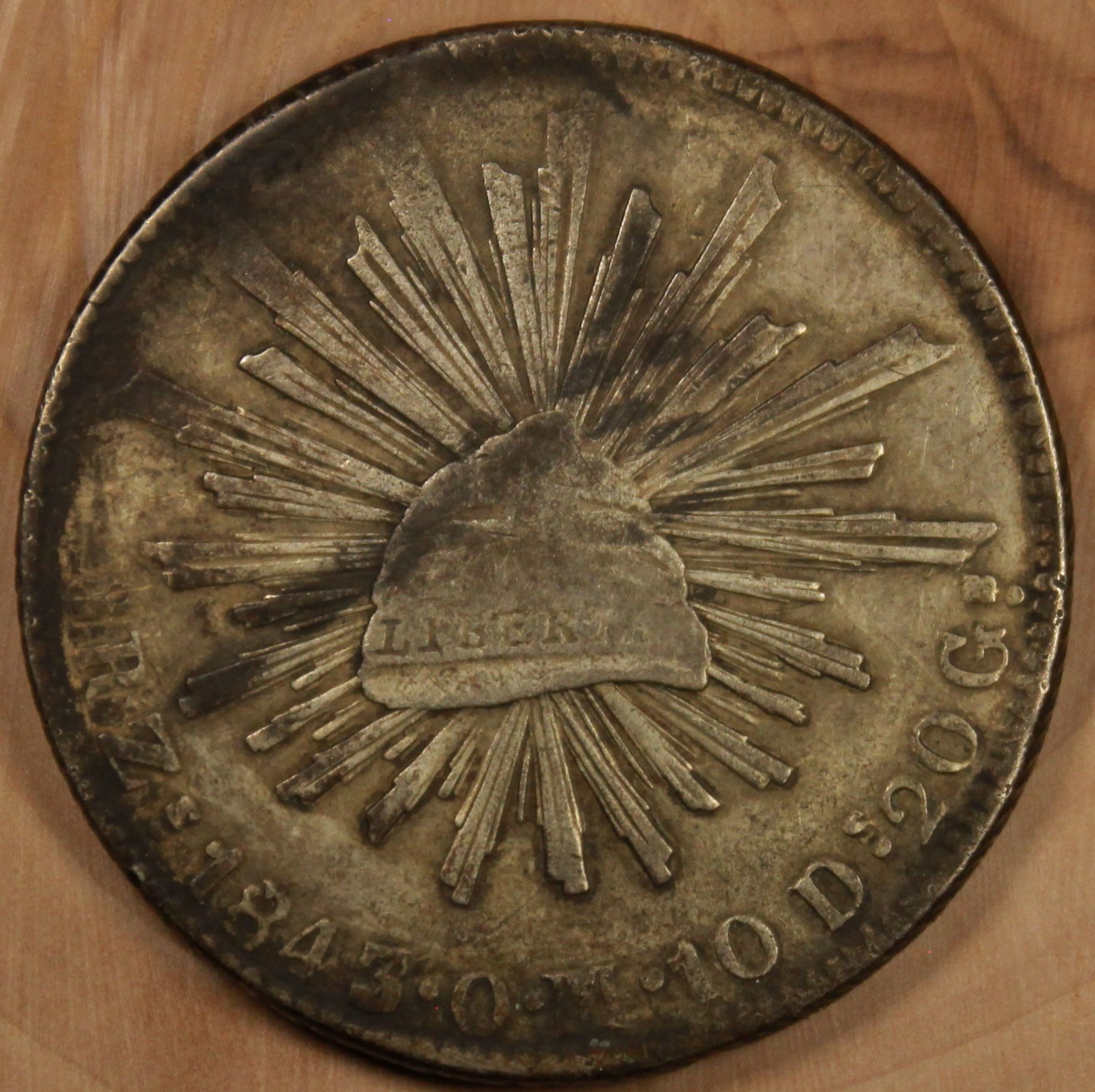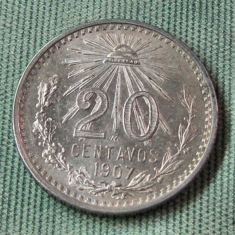 Here are photos of the 1843 Zacatecas 8 Reales and the 1914 Guerrero peso that I posted about previously. I'm including one more picture of a 1907 Straight 7 variety 20 Centavo in nice Unc. U.S. Mints have struck coins for other countries but this is the only one that was struck at the New Orleans mint. My wife tweaked these as much as possible but all the coins look better up close and personal than this. Enjoy!