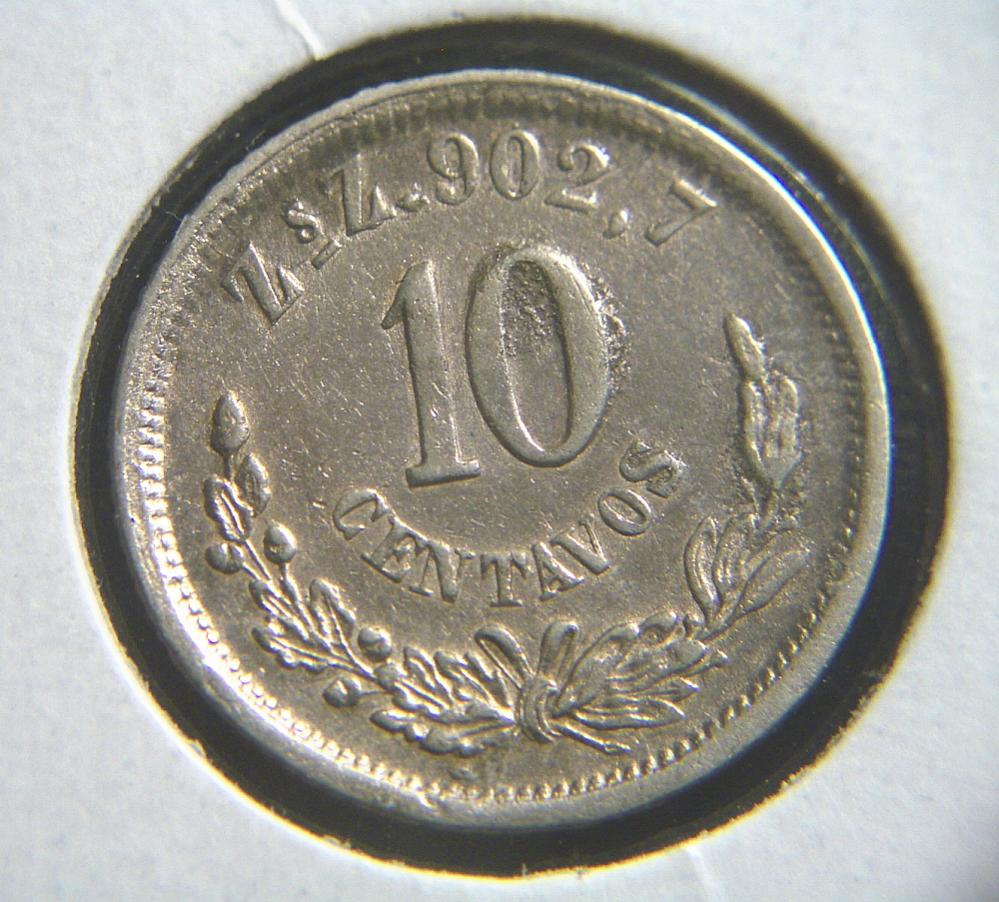 :)If the 10 centavos looks like this one I believe is was struck in Mexico 1896 Mex 10c Obv.jpg 1896 Mex 10c Rev.jpg city?