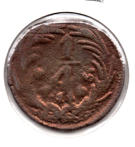 And another odd sort. Though not silver one is obviously a cast forgery. But why? Mexico - 1/4 Real - 1833 Mo KM358 - 7.0000g - Copper - 27mm Mexico - 18?? (1835?) - 1/4 Real Copper - Cast