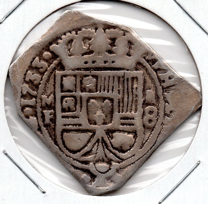 One of many fake cobbs found by my grandfather on his ranch in Mexico in the late 1940's. Consider worthless by him, he gave these to my aunts, uncles and older cousins to use as play money. They are fakes, but they are also silver. Possibly up to 80 or 90%. He found another cash of coins later which turned out to be real silver and gold issues. He sold many pieces to fund a legal battle against the neighboring Haciendados. Because he was new to the area he lost the court battle and most of his land, which made ranching impossible on the only land he was able to keep, a small low mountain range. They immigrated legally to the US in the 1950's. My father brought this one example of a fake cobb with him.