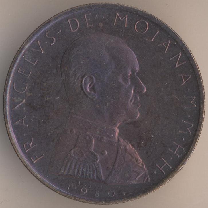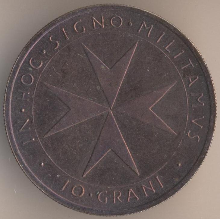 10 grani 1967, copper-zinc-nickel (91% - 8% - 1%), size - 30 mm, weight - 8 g., mintage - 10000 pcs. Fra Angelo de Mojana di Cologna (1962-1988). Minted in Rome.