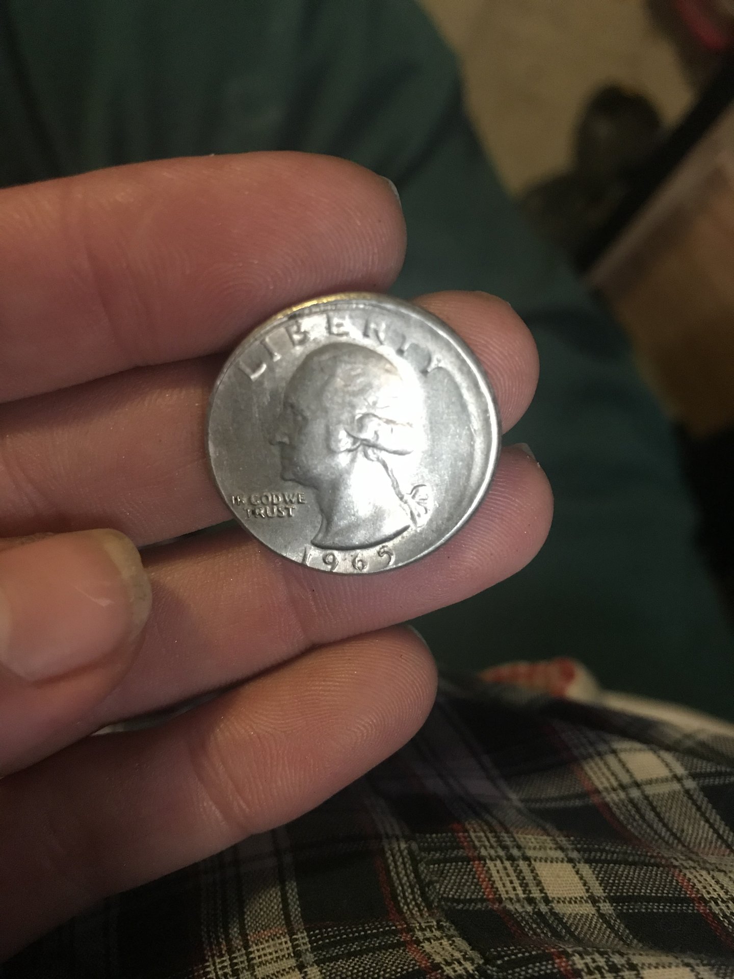 I also have a coin that kinda fits the description.. but it has been flattened so much on one side that it’s larger then a regular quarter in width.. it has a far different sound when it’s placed against other quartered or dropped on a table...