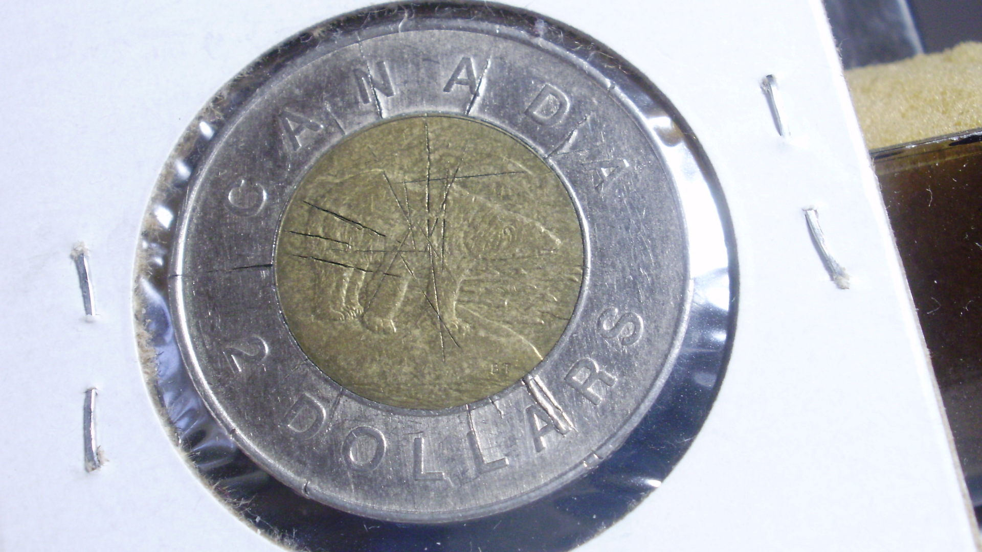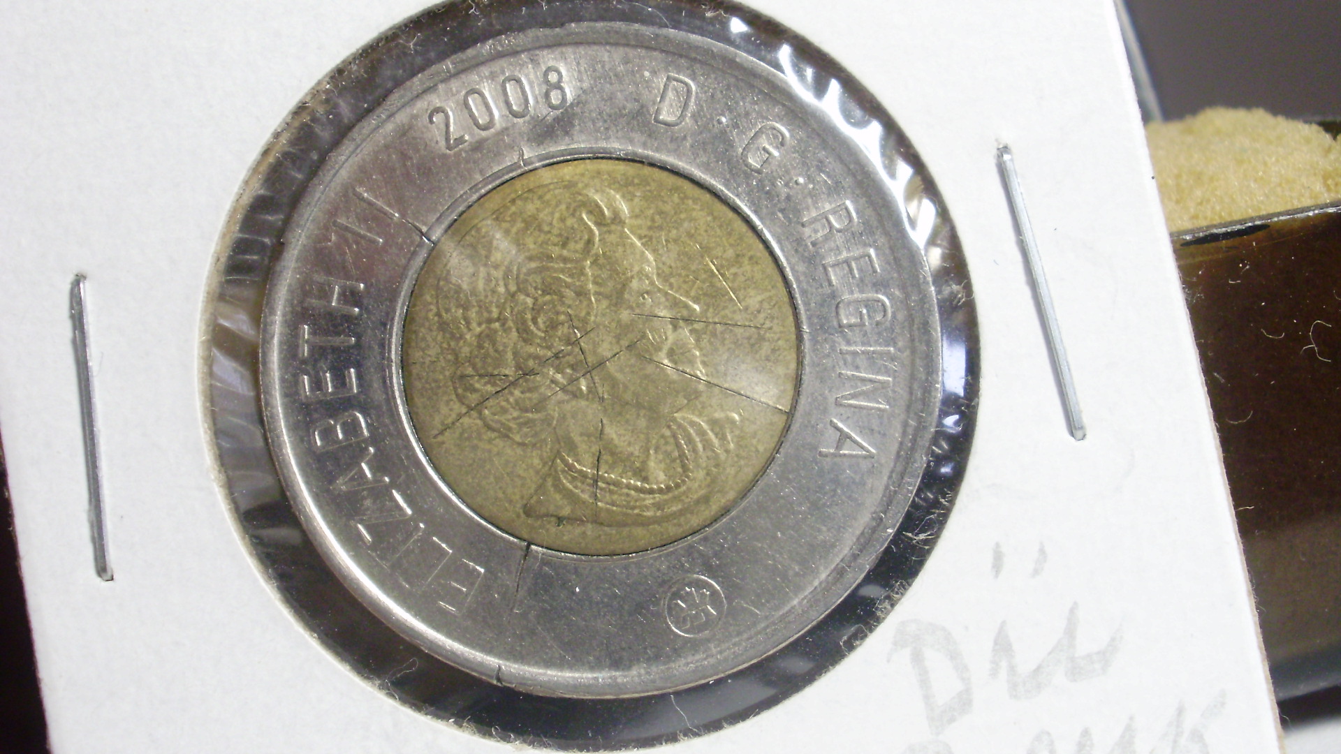 Please see the images of both obverse and reverse of this 2008 Canada $2 coin. I was told that this can't be a Mint Error because the way Minting of coins takes place and this must be due to some damage after the minting. However I am noting on the reverse metal lines at spaces between - A and N and D and A in CANADA, D and O and A and R in DOLLAR which could only originate from the mint. Would you please give your expert opinion. Thank you. Shyamal
