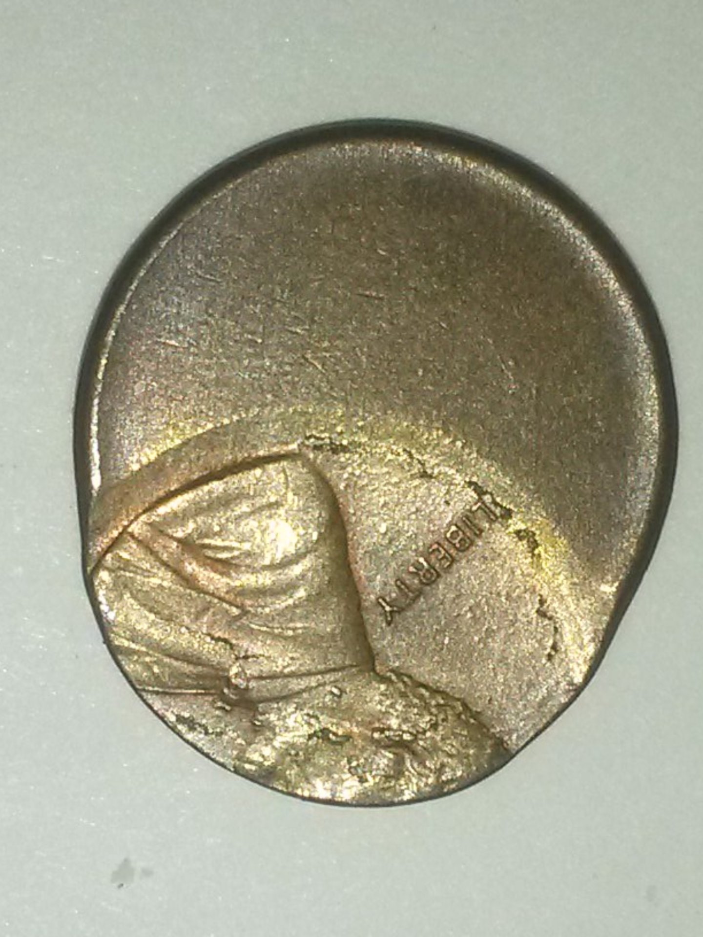 On that '88 coin--has another coin been forced/smashed into the surface of the other coin? Pretty interesting damage.