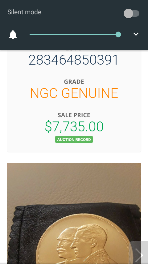 I was looking up a 1977 Philadelphia mint Brown penny. The photo on the left the shows the top of the page. The photo in the center shows the details of the 1977 penny. At the bottom of the center photo when you click on... Auction record... The image on the right appears.