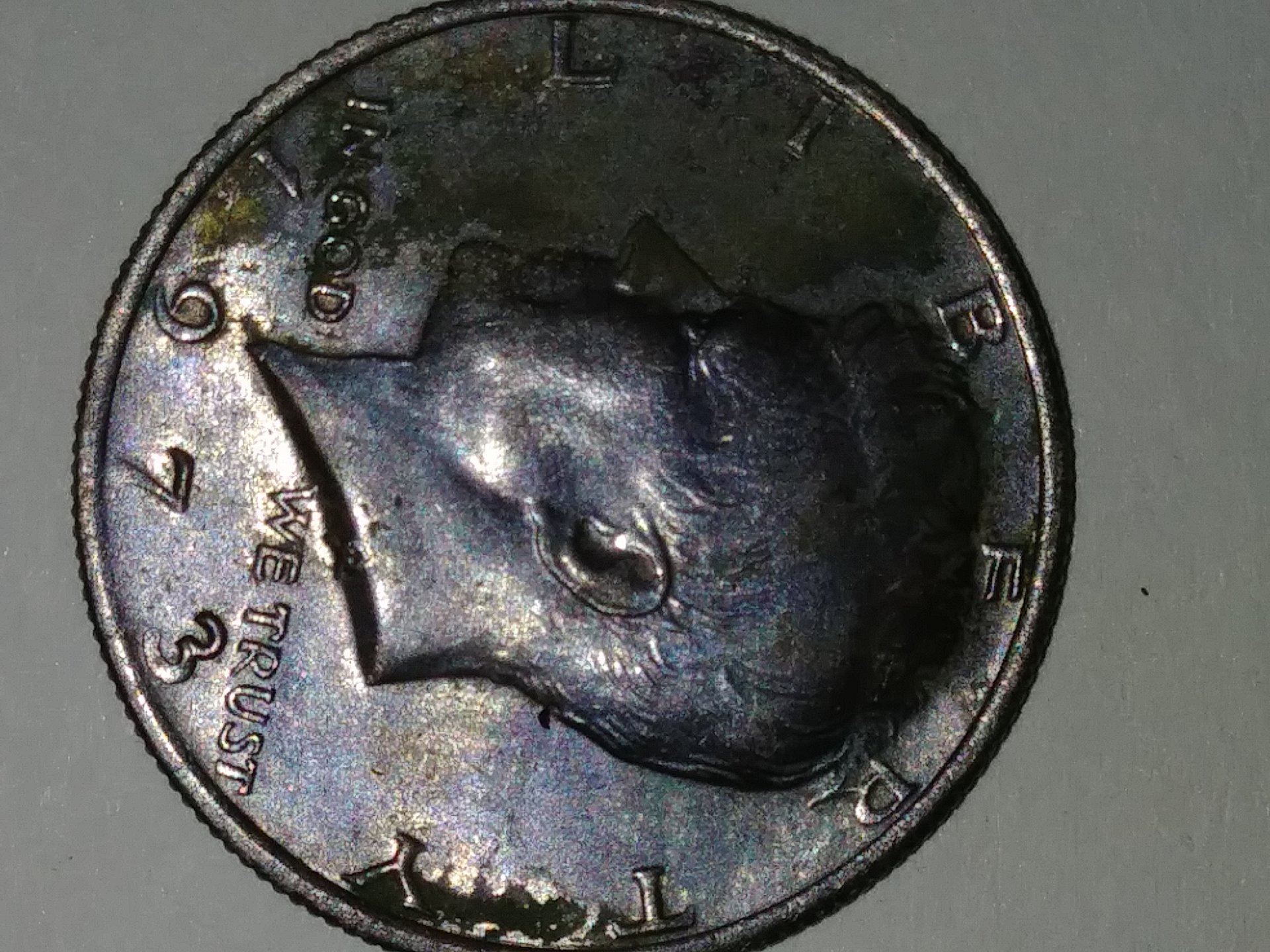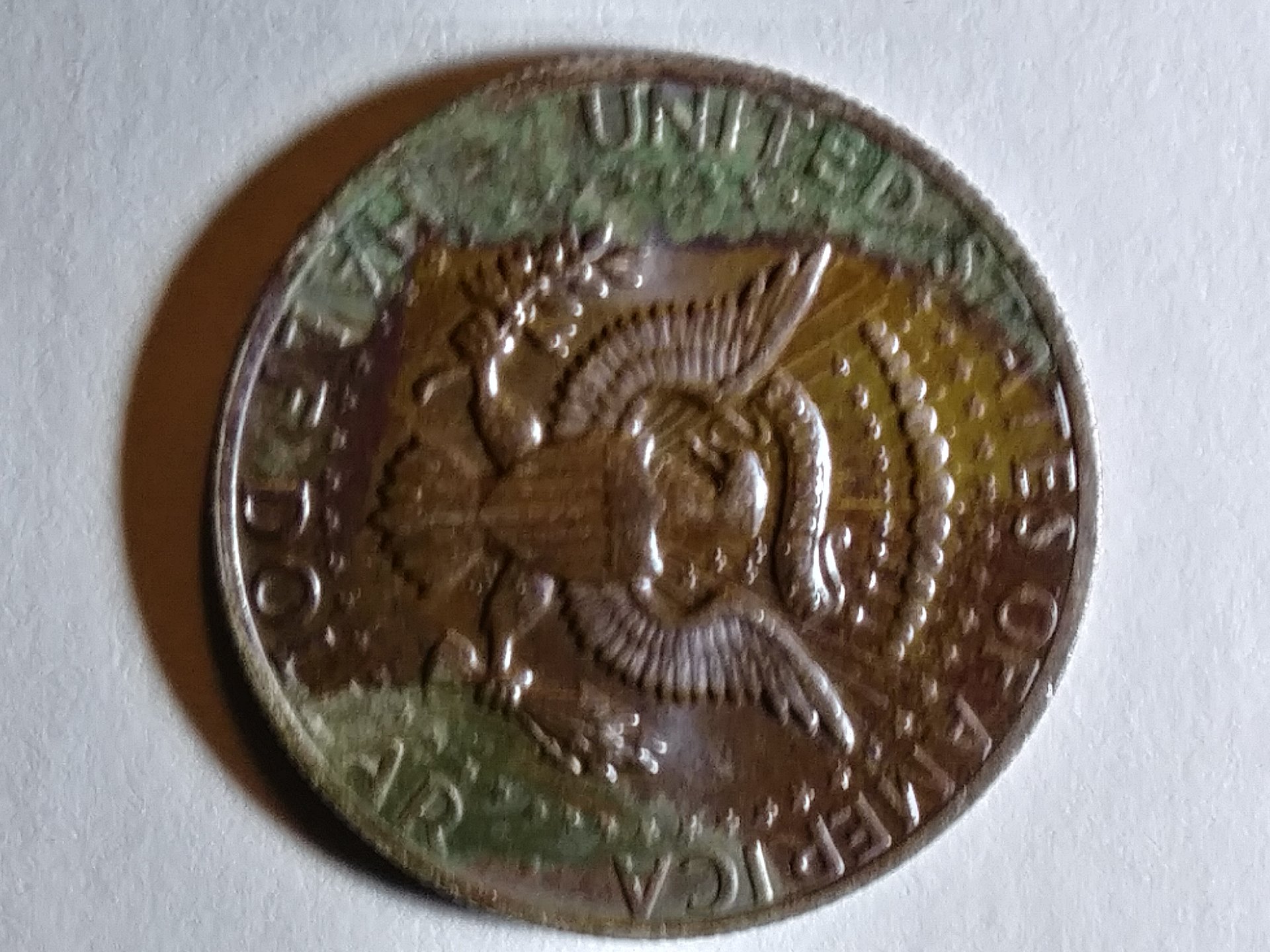 The Kennedy looks toned. Definitely not missing the clad layer. The Jefferson is just plain dirty from circulation and from environmental damage.