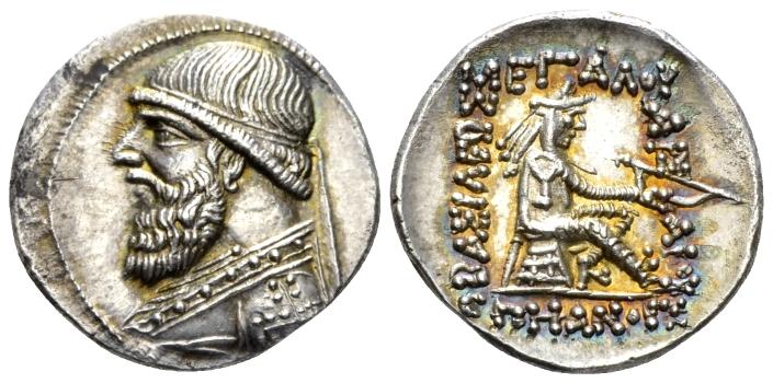 I don't have a coin of Mithradates II, so here is a Parthian tetradrachm of Vardanes I which I won last night. I'll have to get the exact attribution confirmed, most of the description was in Japanese Vardanes I 55-58 AD AR Tetradrachm 14.04g