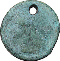 My coin is holey-er than yours. Divus Augustus as by Nerva Some holes are more interesting than others. Holes made in antiquity outrank ones made for 20th century jewelry. This one removed a countermark of a boy's head commonly found on this type. Septimius Severus/Julia Domna AE35 Stratonicea with the c/m This Augustus still has part of the iron nail that once held it to some piece of wood. The hole and nail do not bother me but I really, really wish the guy with the hammer had hit it just a little more gently rather than smashing the portrait so extremely. I don't think any of you could understand how very much I would like to find a few (7?) antoniniani of Postumus each with four holes whether or not they were still in the form of this bracelet shown in my c.1858 photo.