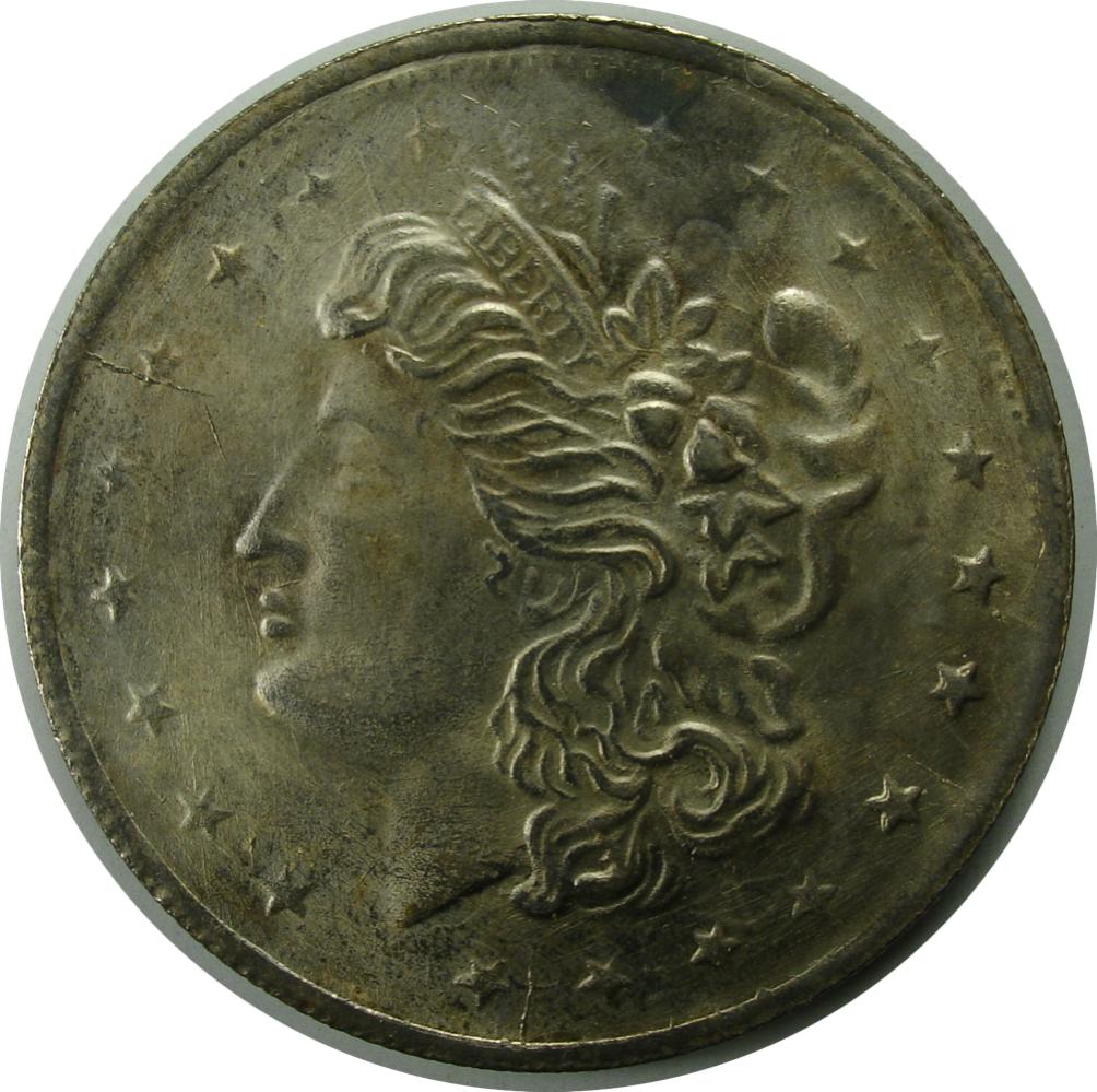 This is a fake one ounce silver round. It was also purchased in Afghanistan but by someone else. It weighs 17.1 grams and is made of pot metal. This same obverse, slightly modified was also used to make fake morgan dollars.