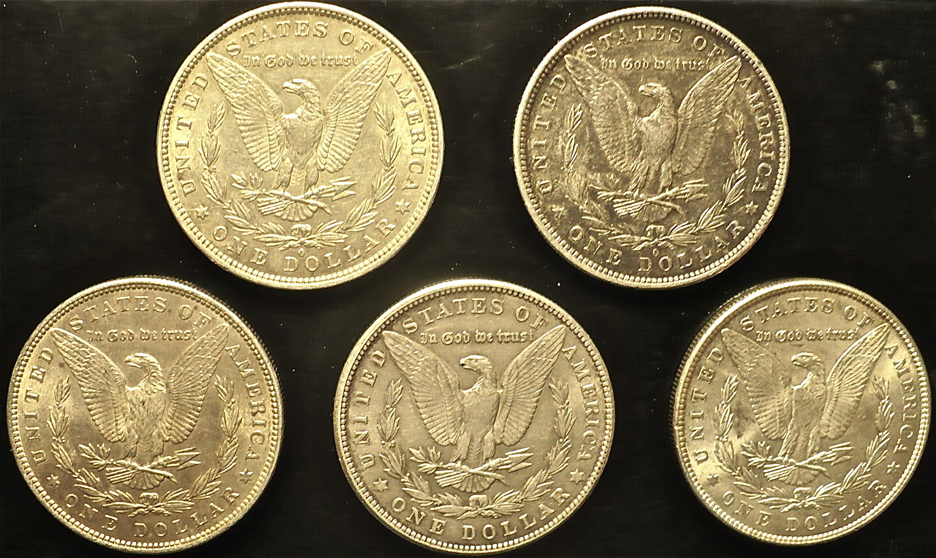 These are 5 of the best of 23 acquired a week ago...among which was an 1890CC, shown elsewhere on CT immediately upon arrival. In the S.D. Box are others, but I haven't looked at them in a long while...I'll have to dig 'em out for potential worthiness of display here. I bought the 2005 edition of Bowers Morgan Red Book, and will try to show increasing intelligence with the passage of time. I'm really intimidated by VAM. I'll get the book, of course; but so much to know about so many miniscule variations...it's daunting. Baby steps for now...easy does it, eh? Thanks for the thread, jello!