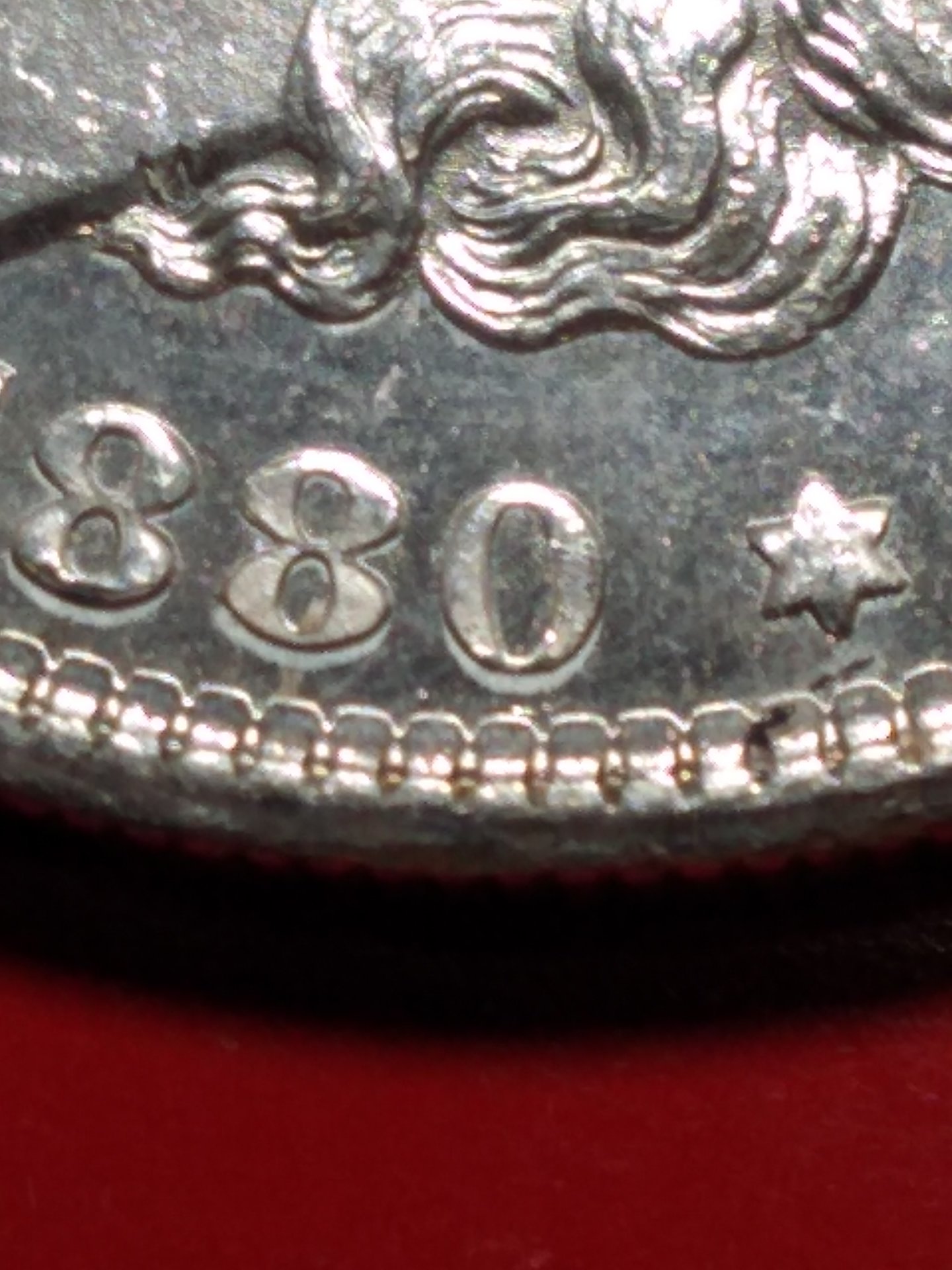 I don't see it, either. There are only two 1880-S obverses listed with a 0/9, and those are VAM 8 (also used on VAM 9) and VAM 11. Both take imagination to see renmants of a 9, and neither looks like yours. For $20, you did fine buying this coin. An uncirculated 80-S, or even an AU58, is at least a $25 coin.