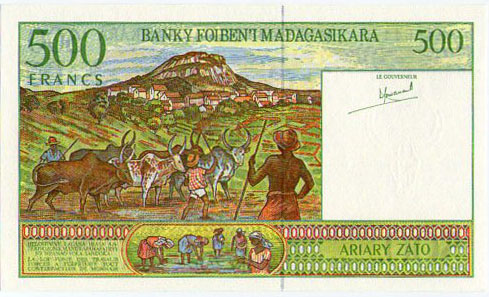 I like this thread :thumb: Some african notes from my collection 500 francs Djbouti 500 francs (or 100 Ariary) Madagascar petronius :smile
