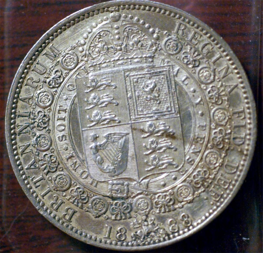 Picked this up recently. 1888 Great Britain with Victoria on the front. Think it is a half crown, but not sure -- just thought it was incredibly intricate.. Cleaned.. but very detailed. Sorry, didn't take time to go out to my copy stand, so this is a freehand photo.