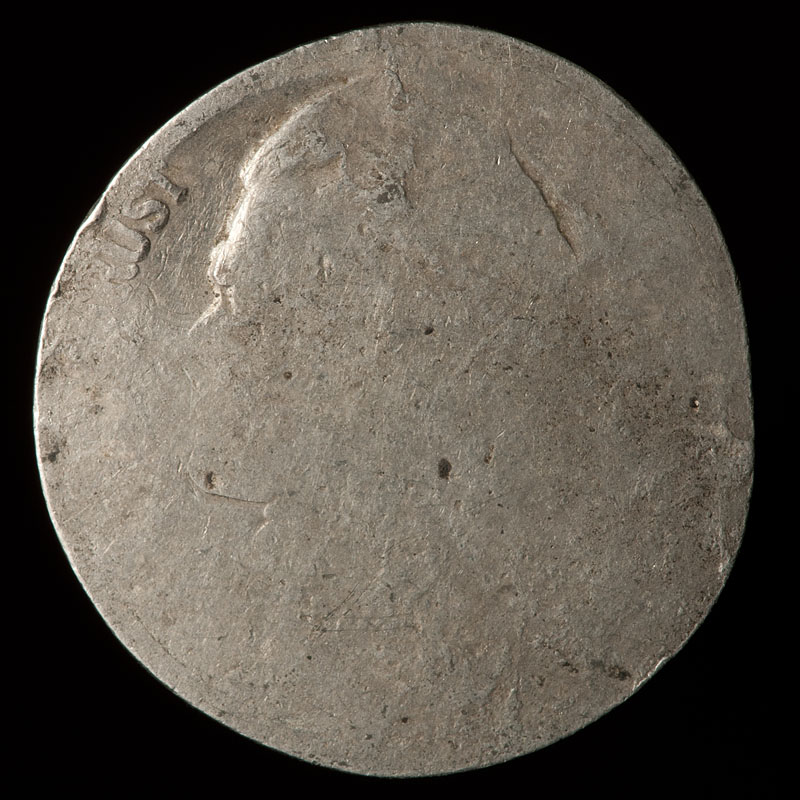 Lol, the date is on the obverse.... :goofer: The date is visible, just on the less mutilated (and less interesting) side. Here's both pics together: