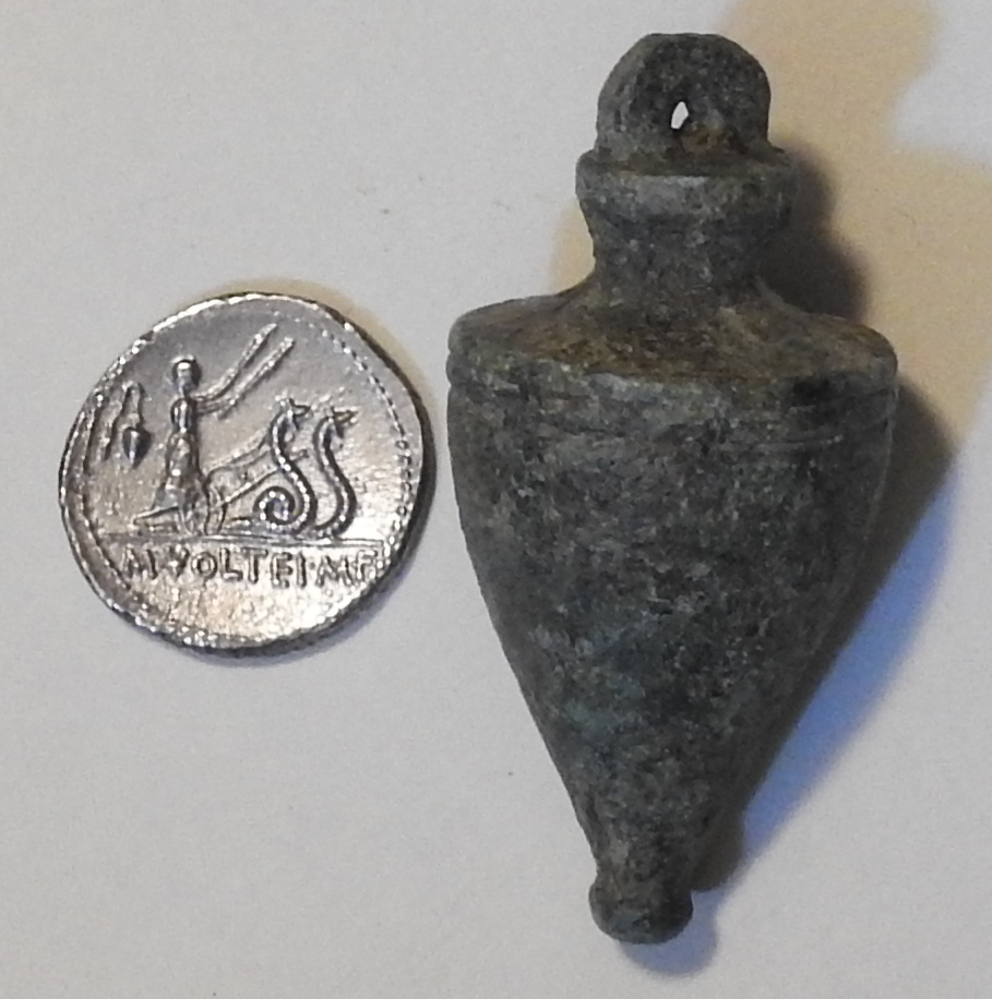 Great thread @Valentinian . Perspective is not always right on Roman coins. This is usually a ruler much larger than a defeated for or an Augustus larger than his children or Caesar. I enjoy reading about coins I buy (before when on line or after when from a coin show). The two most researched I have posted often here - plumb bobs and die clashes. One of the coins I most regret not winning looked like a die clash in the photos. I stopped bidding at about twice my max because I had the type. I was the second bidder and quickly sorry. Look for reversed letters in front of the chin. I have since bought one that has a bit of a shadow, but in hand is not an obvious die clash - see what could be a C in front of the crown. PS - I found another plumb bob symbol, actually an A frame level for my wish list.