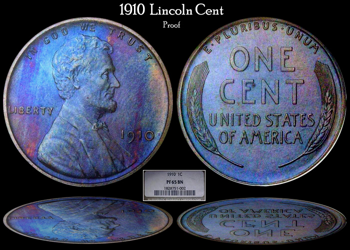 This is not my coin (I wish). But this is the most beautiful Lincoln Cent I've ever seen in my life. A 1910 Matte Proof with some really unique toning -- and if you have a pile of cash laying around, it can be yours. It's for sale (unfortunately, way out of my league). The NGC price guide values this date and grade at $1030, but the seller slapped a 2.5x premium for toning, which is probably why it's not selling. http://cgi.ebay.com/ws/eBayISAPI.dll?ViewItem&item=230451222951&ssPageName=STRK:MEWAX:IT If you have an early proof lincoln, feel free to post it. These are fun to look at. I might have to find one of these early proof coins with some interesting toning that I can actually afford (at some point).